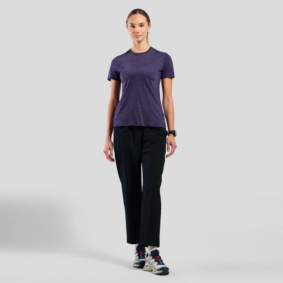 Надеюсь, вас ждет освежающий комфорт: эта футболка изготовлена в Европе из смеси мериносовой шерсти, не подвергавшейся обработке методом мьюлесинга, и лиоцелла TENCEL, полученного из этических источников, в соотношении 50:50. Этот легкий, как перышко, материал с пестрым узором обеспечивает естественную прохладу во время движения — идеально подходит для пеших прогулок, неспешных велопрогулок или активного отдыха летом. Доступна в трех цветах. Универсальная модель из натуральных волокон для теплых солнечных дней.