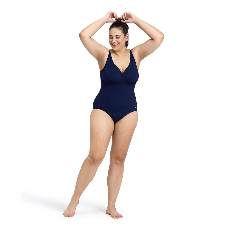 Каждое тело — произведение искусства. Отпразднуйте свою красоту с нашим минималистичным женским купальником Bodylift Maura C-Cup Plus. Он изготовлен из сдержанной моделирующей ткани и дополнен яркими сетчатыми вставками на талии, которые сглаживают ваш силуэт. Глубокий вырез на спине и V-образный вырез одновременно функциональны и модны. Плавайте на дорожках или загорайте на солнце в этом универсальном дизайне. FabricSensitive Reco — это ткань для купальников, изготовленная на 68% из переработанного нейлона. Она сочетает в себе моделирующие свойства, поддерживающую эластичность и легкость, обеспечивая вам комфорт как в воде, так и на суше. Устойчив к хлору, быстросохнущий и защищенный от УФ-излучения, будьте готовы к любому типу воды. Купальники Bodylift для пышных форм, которые формируют и тонизируют тело с помощью различных техник дизайна и материалов, чтобы помочь вам чувствовать себя лучше. Плавание и фитнес: созданы для плавания на дорожках, аквааэробики и использования в любительском режиме. C-cup: специально разработаны для груди C-cup. Инструкции по уходу: Чтобы ваш купальник Arena продолжал служить вам как можно дольше, рекомендуем принять следующие меры предосторожности: