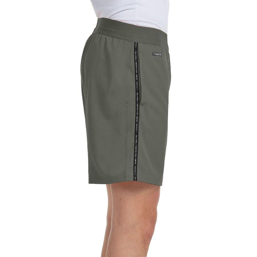 Шорты Bullpadel Maceda. Шорты Bullpadel Maceda длиной 45 см обеспечивают непревзойденный комфорт и гибкость. Эластичный пояс с регулируемым шнурком и практичные боковые карманы обеспечивают гибкую и функциональную посадку. Двунаправленный эластичный полиэстеровый материал обеспечивает свободу движений. Термосварные полосы со светоотражающим принтом и лазерная перфорация по бокам придают им современный и практичный вид. Благодаря технологии Binamic эти шорты легкие и гибкие, повышая ваши результаты. Кроме того, быстросохнущая технология позволяет впитывать и выводить влагу, обеспечивая оптимальную воздухопроницаемость во время тренировок или повседневной деятельности.