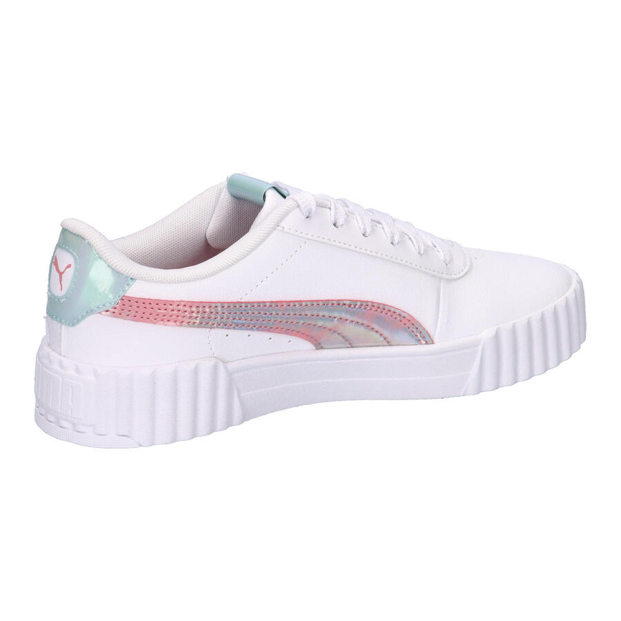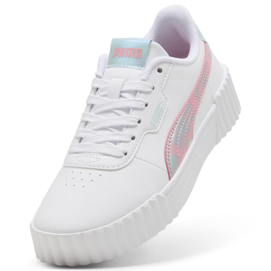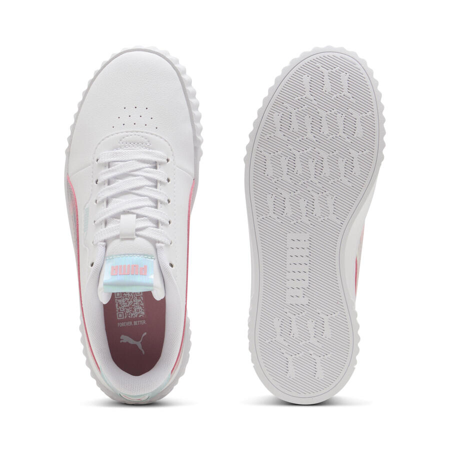 С PUMA Carina каждый шаг в радость! Эти кроссовки, вдохновленные теннисом, созданы для детей, которые никогда не стоят на месте. Их простой и удобный дизайн делает их идеальными для игровой площадки или просто для отдыха. От утренних развлечений до дневных приключений, эти кроссовки позволят вам выглядеть круто в течение всего дня.