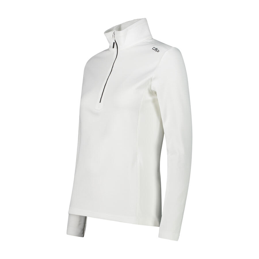 Женский свитер CMP. Женский свитер с воротником-стойкой и полудлинной молнией идеально подходит в качестве второго слоя под горнолыжную куртку. Эта модель из мягкой и теплой ткани Grid-Tech эргономична благодаря эластичному материалу, обеспечивающему оптимальную свободу движений. Защита от натирания в гараже молнии — еще одна деталь, которая имеет решающее значение в холодные дни в горах. Этот предмет одежды полностью изготовлен на нашем собственном производстве и сертифицирован по стандарту Oeko-Tex Standard 100. Это означает, что используются только материалы и красители, которые не наносят вреда окружающей среде и здоровью. Состав: 90% полиэстер, 10% эластан.