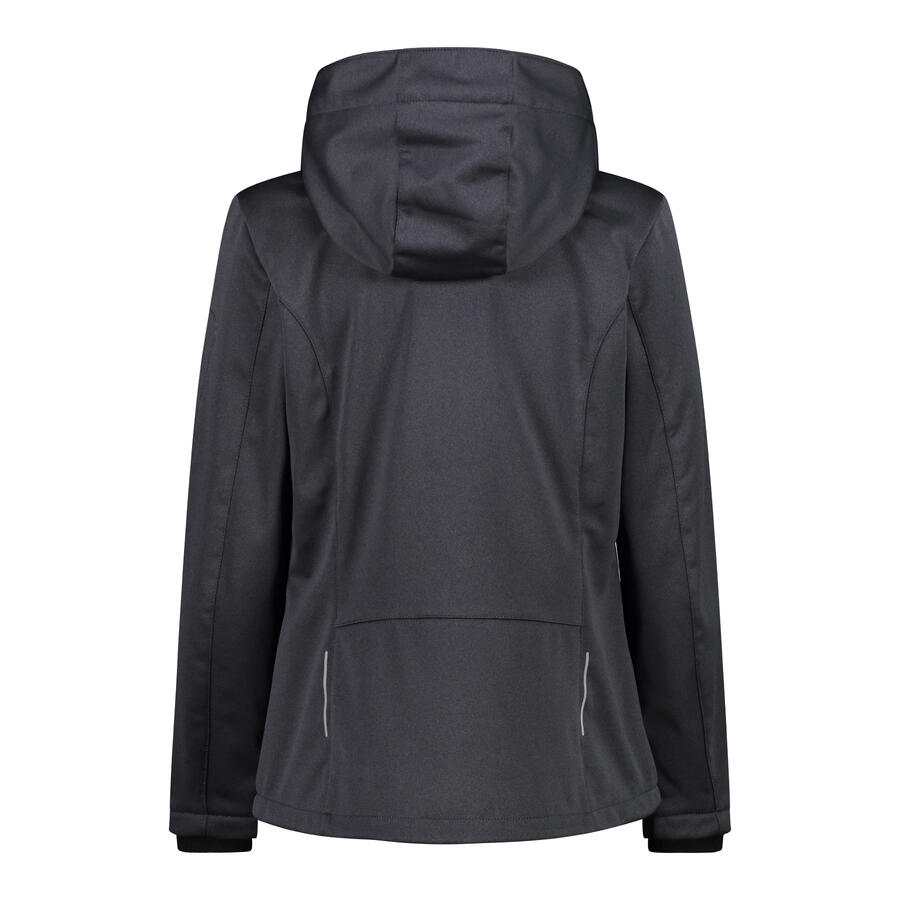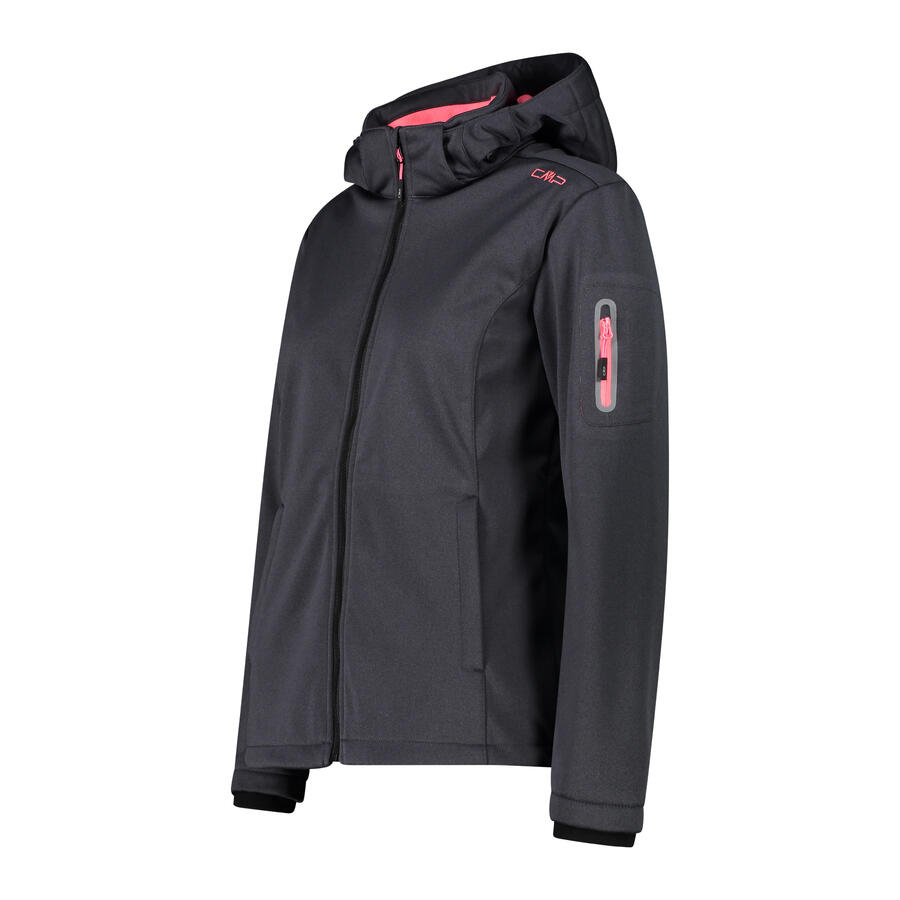 Женская куртка CMP Softshell с капюшоном на молнии. Классическая куртка из коллекции CMP для активного отдыха, защитит вас как в горах, так и в городе. Внешний материал Softshell сочетается с мягким и тёплым флисом, который приятно прилегает к коже. Между ними расположена мембрана Clima Protect, обеспечивающая водонепроницаемость и воздухопроницаемость (водонепроницаемость 7000, MVP 1000). Куртка имеет съёмный заправляющийся капюшон и множество деталей, таких как термосварной карман на рукаве, два боковых кармана с сетчатой подкладкой, а также молнию и двойной шнурок по нижнему краю. Технология: Clima Protect; водоотталкивающая пропитка. Вес: 665 г. Длина: 67 см. Материал: 100% полиэстер.