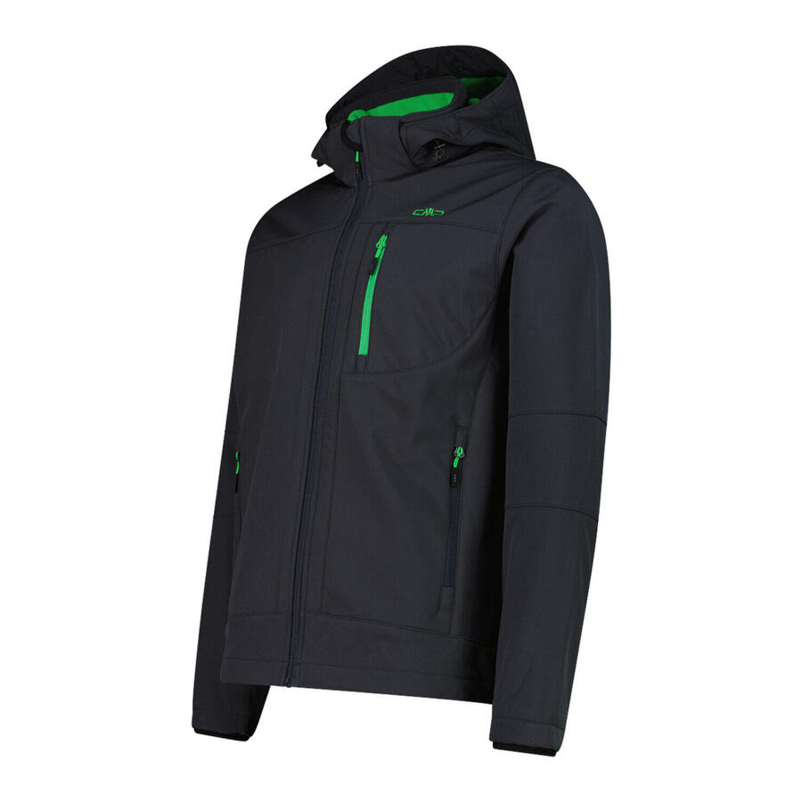 Мужская куртка софтшелл CMP с капюшоном на молнии. Эта мужская куртка софтшелл отвечает всем требованиям функциональной куртки для активного отдыха. Она полностью ветро- и водонепроницаема, а также обладает высокой воздухопроницаемостью благодаря микропористому покрытию Wind Protect и трёхслойной ткани. Флисовая подкладка приятно согревает, мягкая и приятная на ощупь. Куртка также имеет два боковых и один передний карманы, а также съёмный регулируемый капюшон. Технология: Clima Protect; водоотталкивающая пропитка. Вес: 675 г. Длина: 72 см. Материал: 96% полиэстер, 4% эластан. Подкладка: 100% полиэстер.