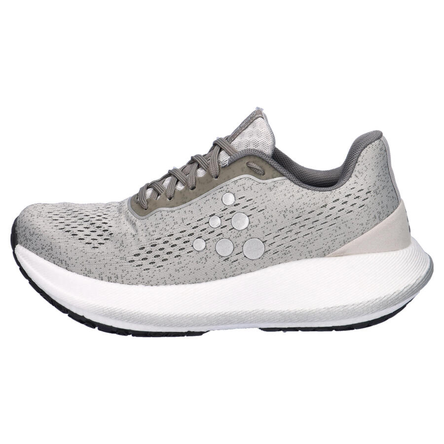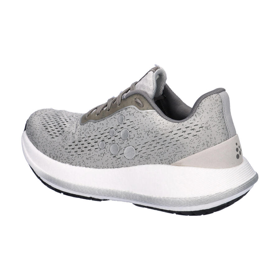 Женские кроссовки для бега Craft PACER W. Представляем Pacer — наши самые удобные кроссовки для бега, обеспечивающие исключительную динамику и устойчивость для плавного и быстрого бега. Благодаря более мягкой версии успешной пены Px Foam в промежуточной подошве, Pacer обеспечивает стабильный, плавный и отзывчивый ход с взрывным отскоком — идеально подходит для скоростных тренировок и повседневных пробежек. Легкая конструкция обеспечивает упругость и энергию, продвигая вас вперед с каждым шагом, а минималистичный дизайн подошвы с шестиугольным рисунком выступов обеспечивает превосходное сцепление с различными поверхностями. Кроме того, верх изготовлен из легкого и дышащего материала, обеспечивающего удобную и стабильную посадку. Благодаря своему элегантному дизайну и малому весу Pacer — идеальный выбор для бегунов, которые ищут быструю, маневренную обувь, которая не будет утяжелять их. Пена Px Foam — это сверхлегкий материал промежуточной подошвы, который обеспечивает исключительно высокий возврат энергии, будучи амортизирующим и гибким. В производстве этой инновационной модели используется один натуральный пенообразователь без добавления химических сшивающих агентов. Более того, исходные и готовые материалы полностью пригодны для повторного использования. Инновационная пена обладает чрезвычайно низкой плотностью, что делает её до 20% легче обычного ЭВА. Уменьшенный вес в сочетании с взрывной отдачей делает Px Foam идеальным выбором для любых пробежек. Промежуточная подошва Px Foam: превосходный возврат энергии. Контурная конструкция шасси для снижения веса и непревзойденного комфорта. Вес: 270 граммов, размер UK 8. Пятка: 40 мм, передняя часть: 34 мм. Перепад: 6 мм. Верх: текстиль, другие материалы. Подкладка и стелька: текстиль, другие материалы. Подошва: другие материалы.