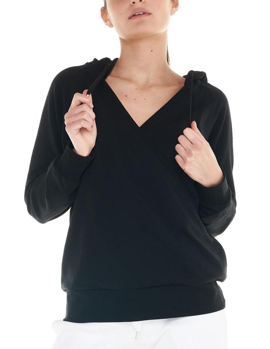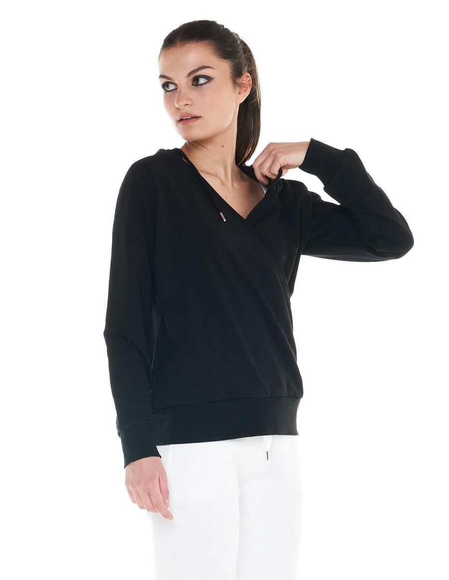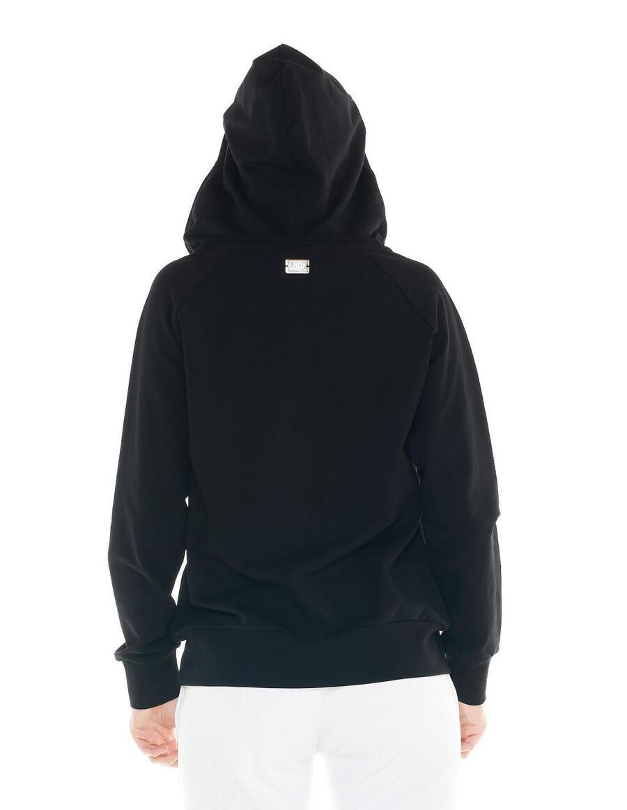 Женская толстовка с капюшоном из коллекции Leone 1947 Apparel Cristal Shine. Широкий тканый вырез, капюшон с регулируемой кулиской. Низ и манжеты выполнены из эластичной трикотажной резинки. На капюшоне прикреплен небольшой металлический лейбл с логотипом. Тканые лейблы пришиты с внутренней стороны изделия.