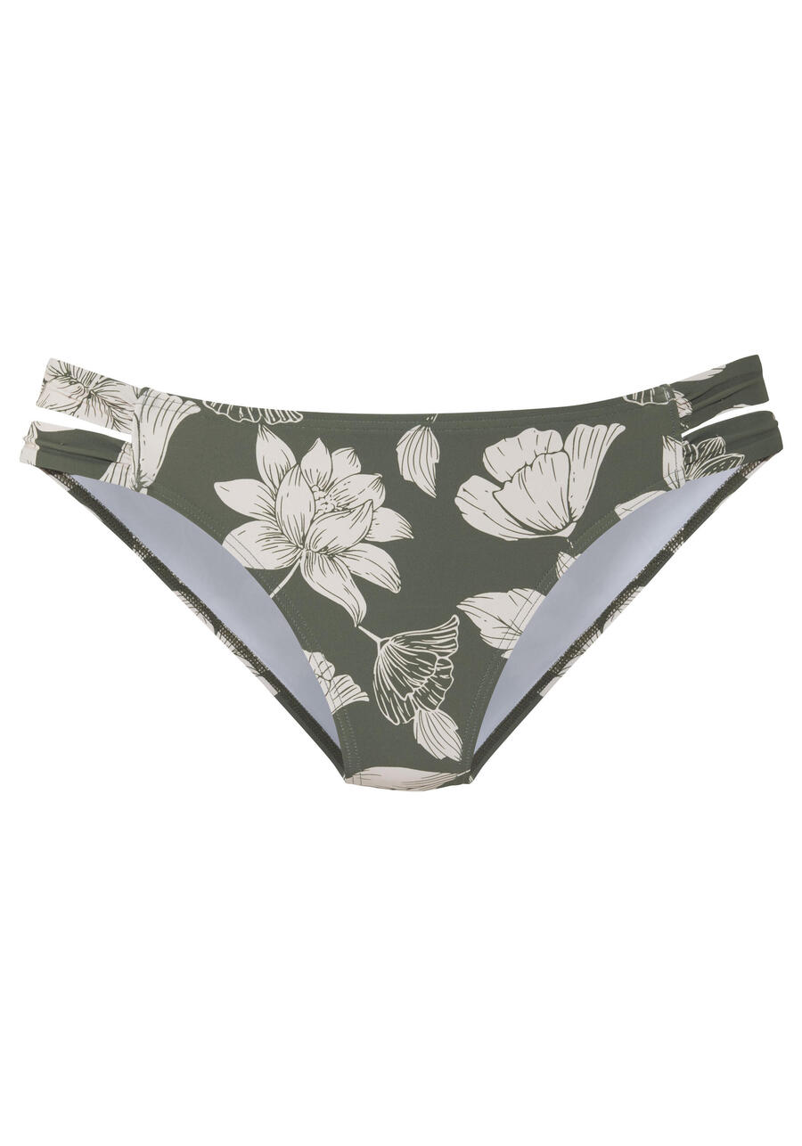Трусики-бикини от S. Oliver с цветочным принтом по всей поверхности. Широкие завязки по бокам. Концепция микс-кини. Комфортное качество с добавлением переработанного полиамида. GOA-127