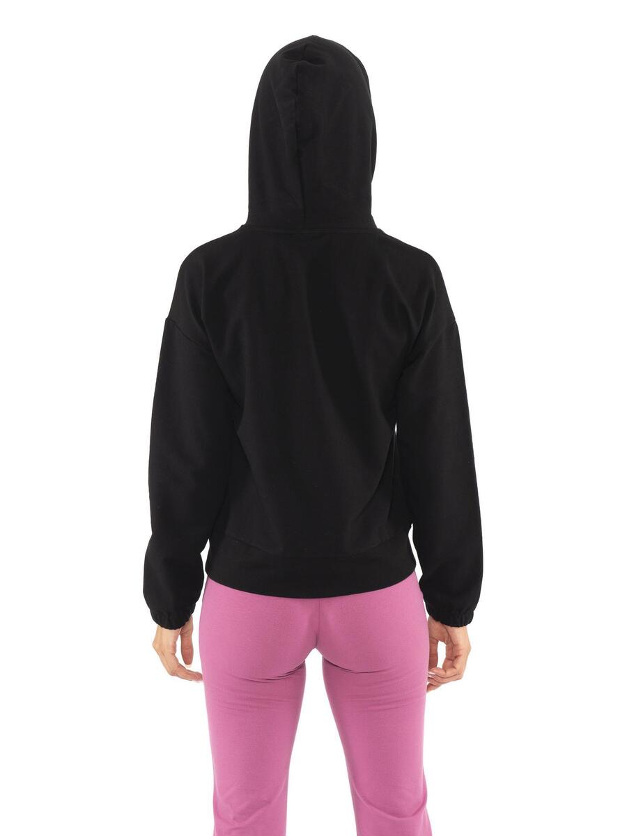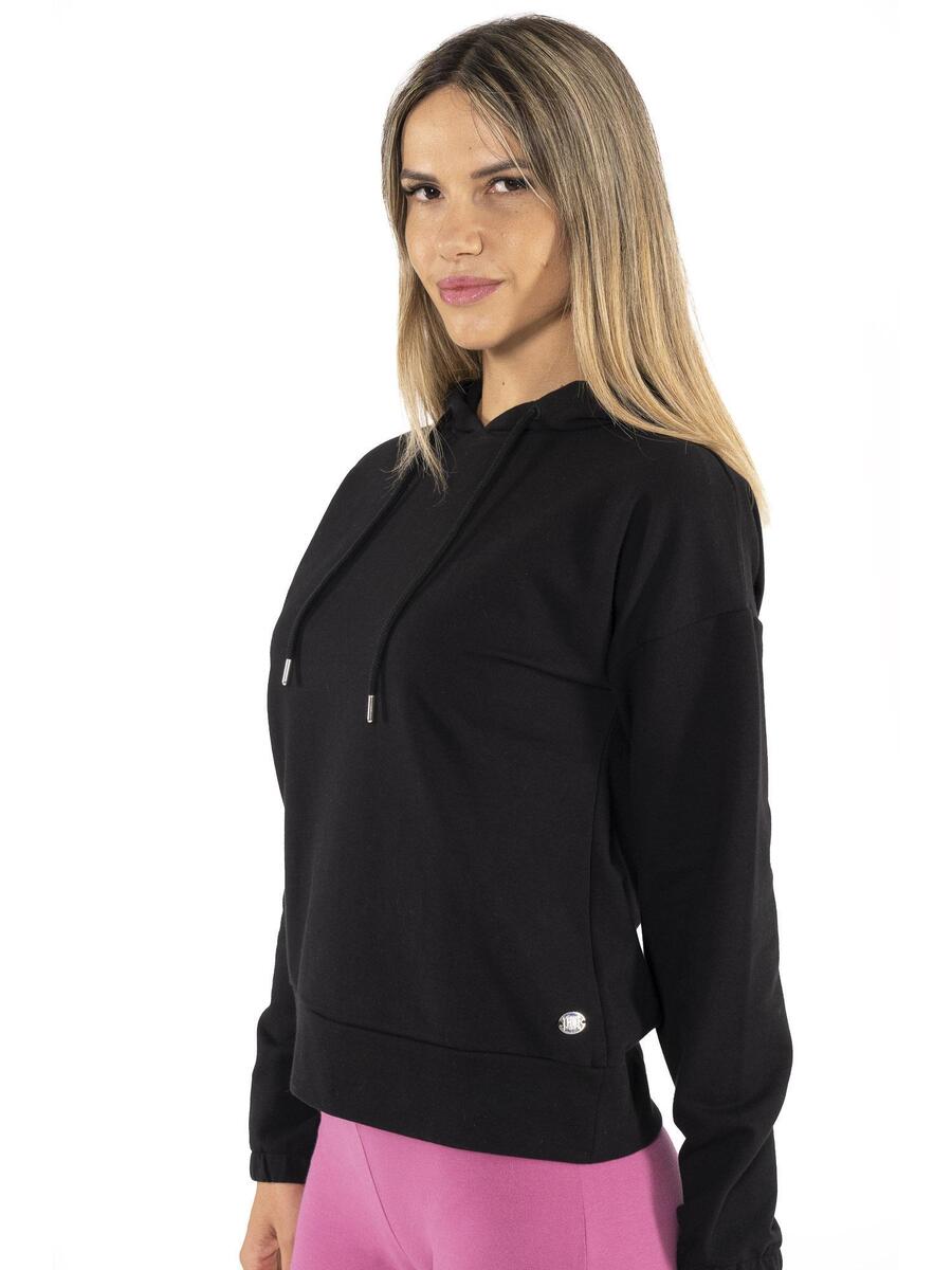 Женская толстовка из эластичного хлопкового флиса. Капюшон затягивается на регулируемый шнурок со шнурками и соответствующими кобурами. Низ выполнен из эластичной трикотажной резинки для идеальной посадки. Манжеты на резинке. С левой стороны расположена хромированная металлическая пластина с логотипом Leone 1947. Идеальный базовый предмет одежды на зиму.