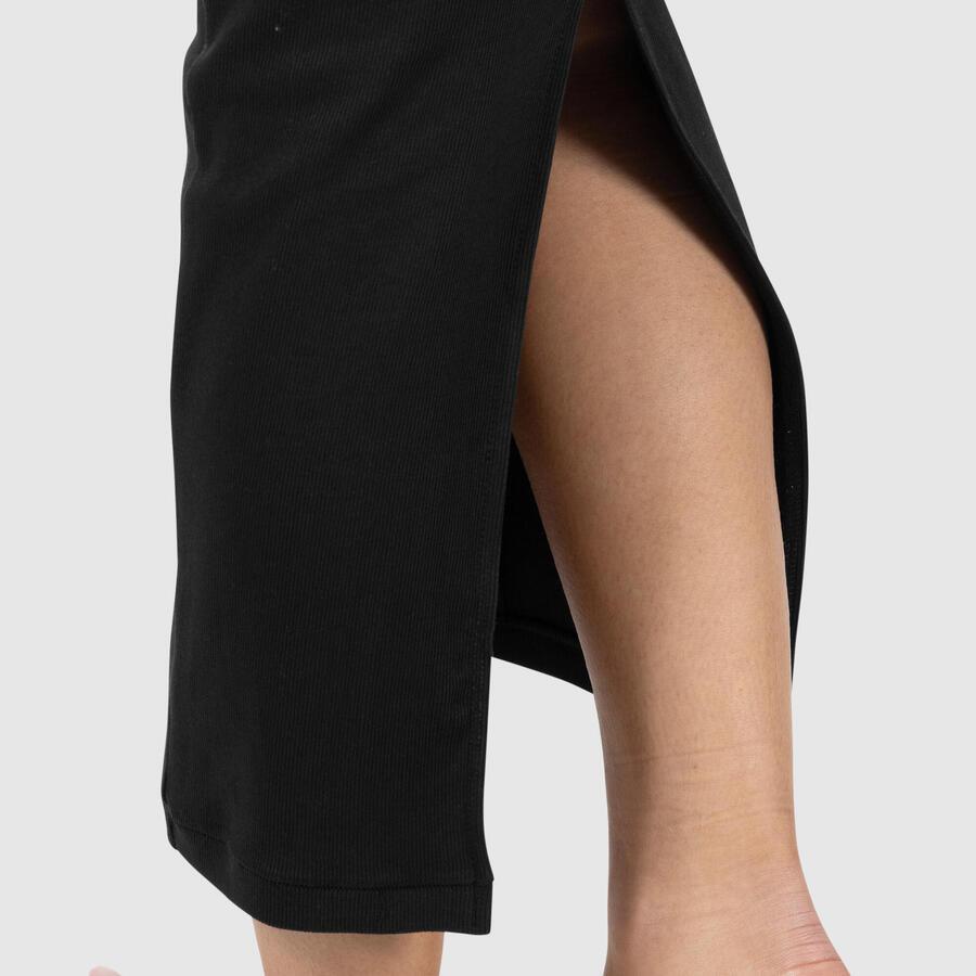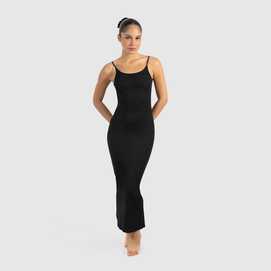 Это макси-платье сочетает в себе строгую элегантность и исключительный комфорт. Облегающий крой из тонкой трикотажной резинки подчеркивает силуэт, а узкие бретельки-спагетти и круглый вырез создают классический образ. Короткий разрез сзади на подоле обеспечивает большую свободу движений и подчёркивает женственность. Длина до щиколотки делает платье универсальным и универсальным, его можно носить как с повседневной, так и с элегантной одеждой. Эластичная ткань обеспечивает удобную посадку и комфорт в течение всего дня, идеально подходит для повседневной носки, отдыха или особых случаев.