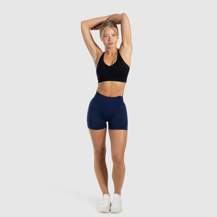 Наши шорты сочетают в себе форму и функциональность: эффект пуш-ап достигается благодаря тонкому шву, который мягко подчеркивает силуэт. Высокий пояс корректирует талию и обеспечивает надежную посадку. Бесшовный материал идеально облегает тело и сохраняет нужную форму при каждом движении — будь то занятия йогой, пилатесом или обычные занятия в студии.