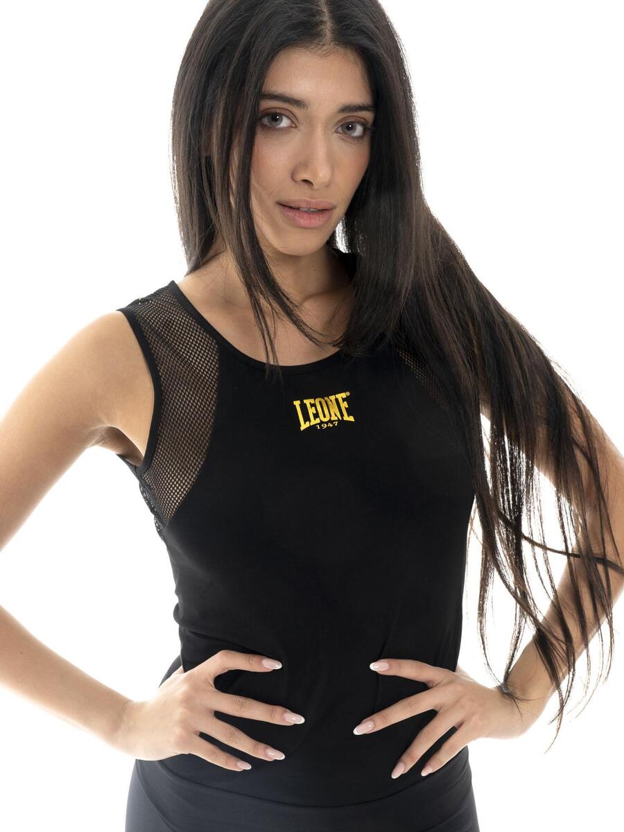 Женская майка с сетчатыми вставками на лопатках. Изготовлена из эластичного хлопка и идеально подходит для занятий спортом.