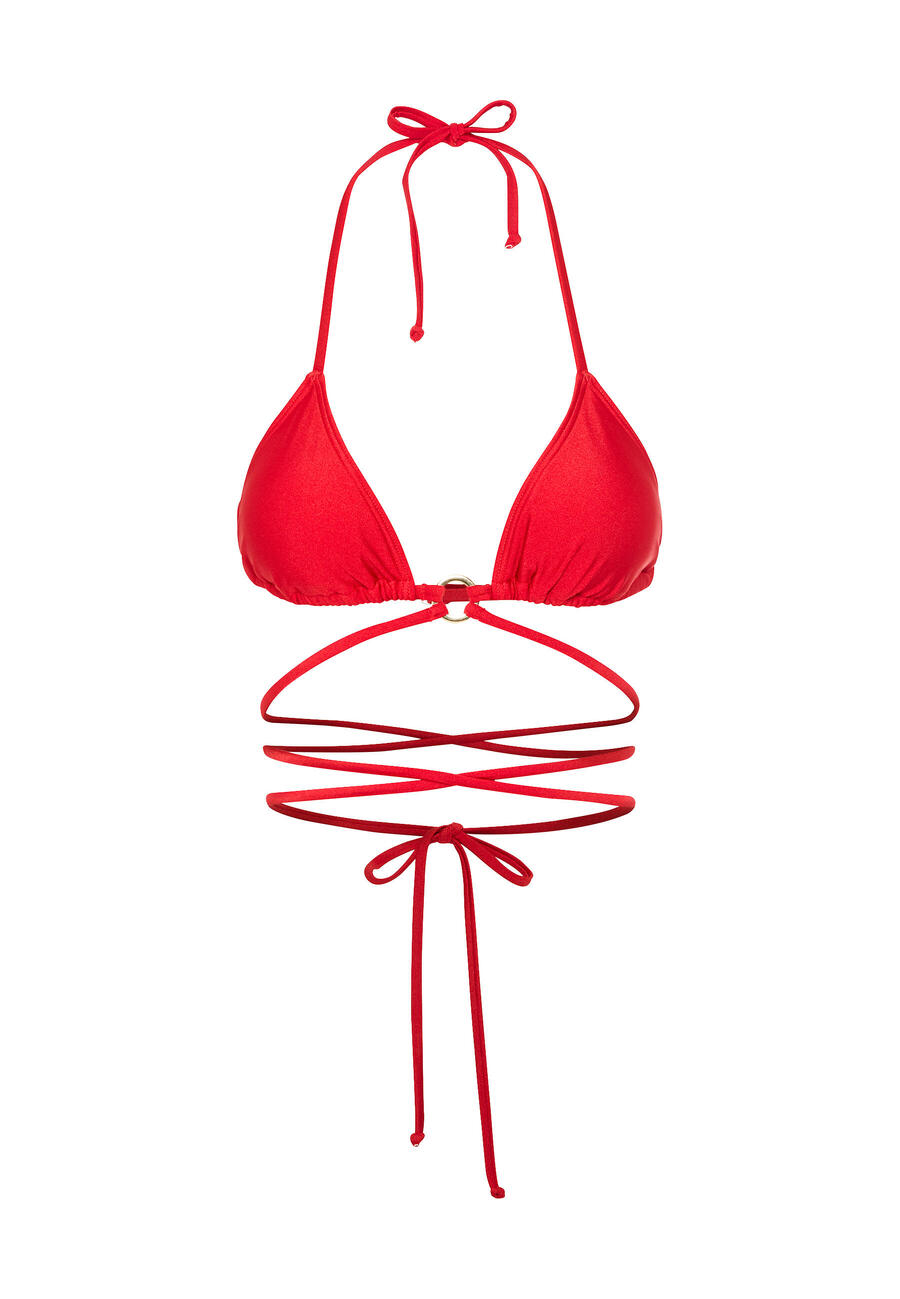 Треугольный топ LSCN by Lascana с изысканной шнуровкой. Бретельки перекрещиваются спереди и завязываются сзади. Мягкие съёмные чашечки и регулируемая спинка. Дизайн микс-кини. Блестящий полиамид с покрытием. GOA-507