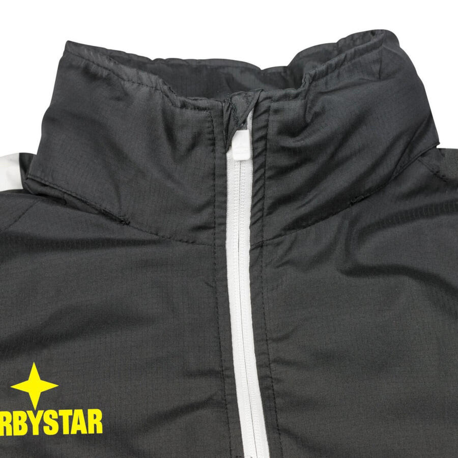 Мужская всепогодная куртка Derbystar Madrid v25. Ветро- и водоотталкивающая. Высокий воротник и откидывающийся капюшон для оптимальной защиты от непогоды. Два боковых кармана на молнии. Материал: 100% полиэстер.