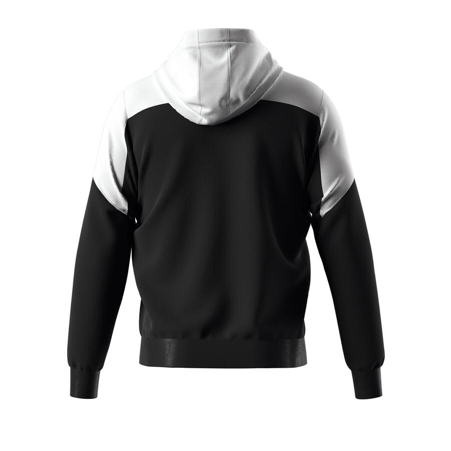 Цвет: ЧЁРНО-БЕЛЫЙ. Состав: 80% хлопок, 20% полиэстер (ткань Камелия плотностью 290 г/м²). Рукава: длинные. Крой: стандартный. Застёжка: молния. Подкладка: хлопковый флис. Детали: капюшон с регулируемой кулиской, боковые карманы на молнии, ребристые манжеты и пояс, контрастная передняя полоска, современный унисекс-крой. Экологичность: сертифицировано по стандарту Oeko-Tex 100. Применение: идеально подходит для отдыха и офиса. Эта толстовка сочетает в себе комфорт, функциональность и стиль благодаря классическому крою и двухцветному дизайну.