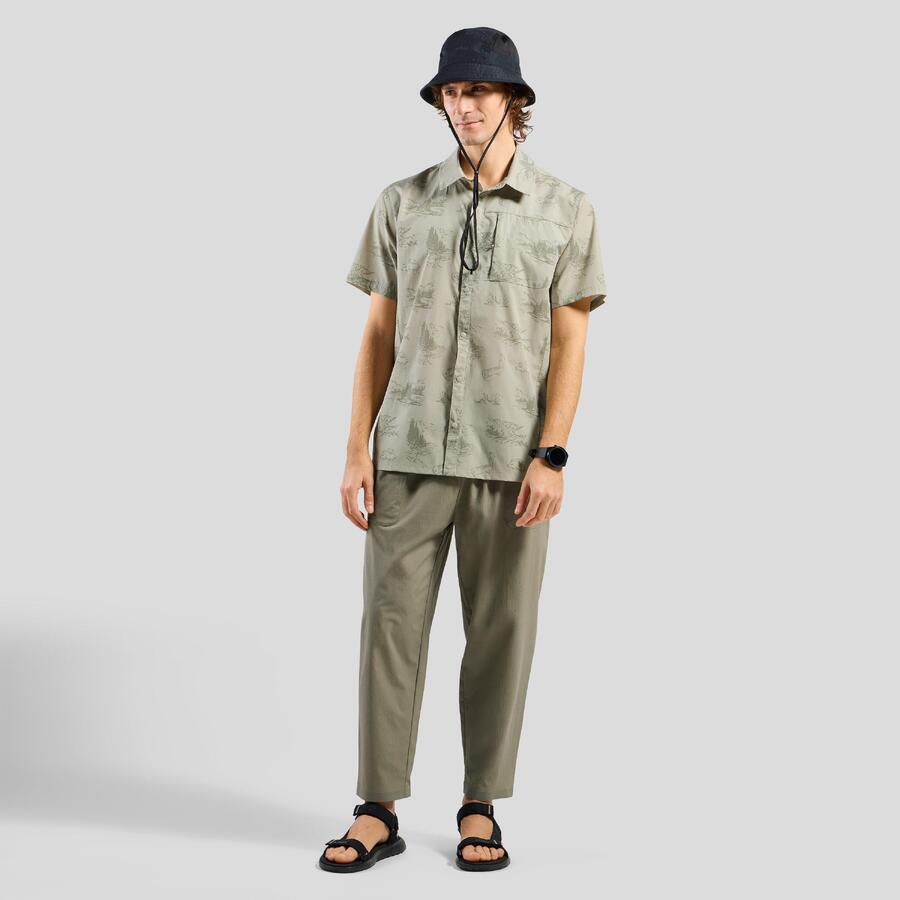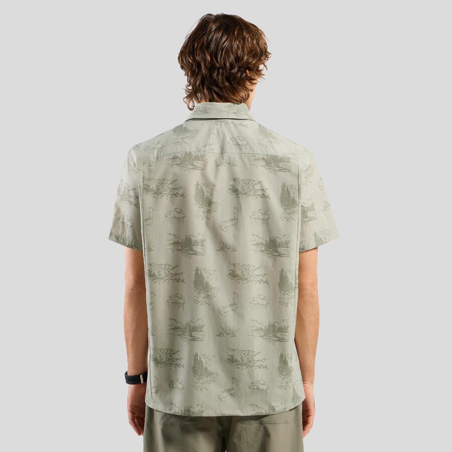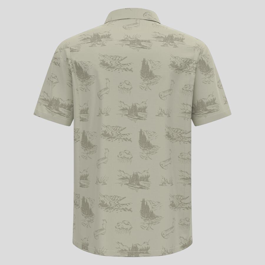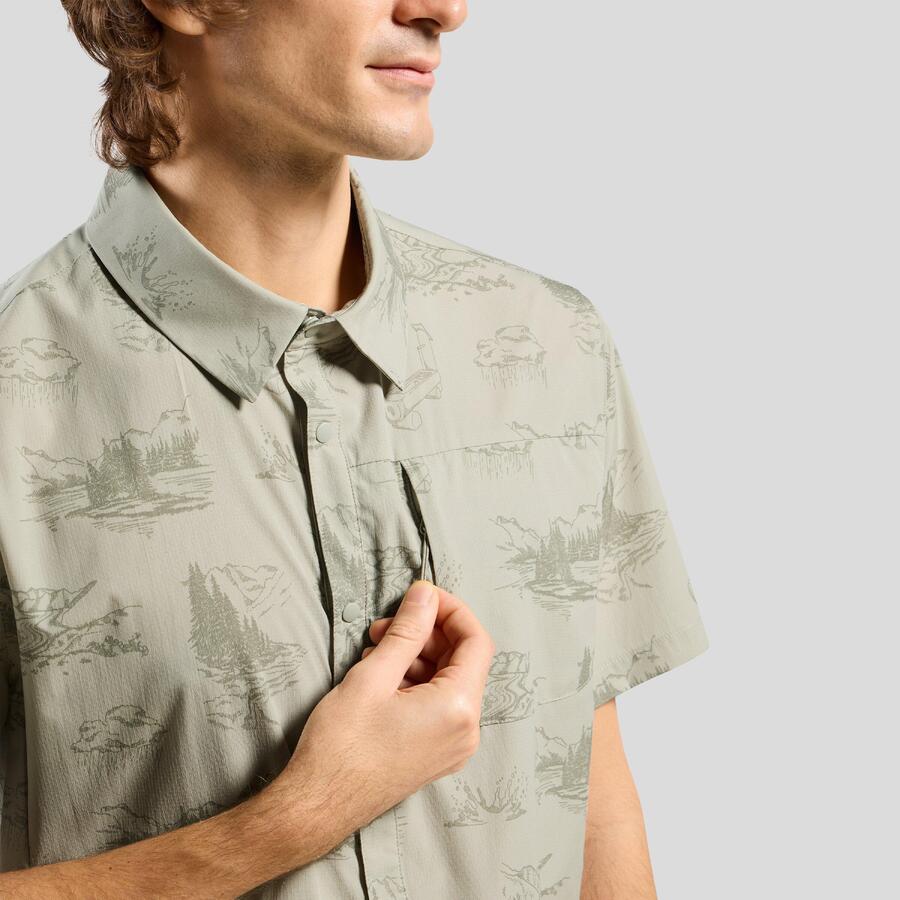 Эта рубашка с короткими рукавами изготовлена из ультралёгкой и чрезвычайно быстросохнущей текстурированной ткани рипстоп. На ней нанесён принт, созданный нашими дизайнерами, с изображением всех водных источников Швейцарии, а также пуговицы в цвет рубашки и нагрудный карман на молнии. Лёгкая классика для походов, сочетающая в себе свежий вид и ретро-стиль. А для (ещё) более эффектного образа наденьте рубашку с подходящими шортами для походов Essentials с принтом.