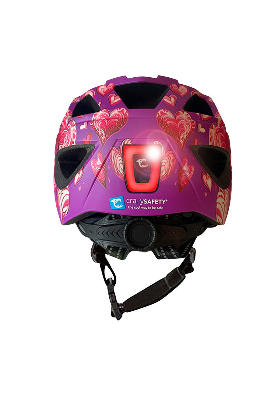 Разработано для детей: Вам надоело постоянно напоминать своим детям надевать велосипедный шлем? С велосипедным шлемом Crazy Safety Cool это в прошлом — он такой классный, что они сами захотят его носить! Уникальная форма и детальный дизайн гарантируют, что дети носят шлем не потому, что должны, а потому, что им это нравится. Безопасность встречается со стилем: Наша миссия — объединить дизайн и безопасность самым крутым способом, сделав безопасность веселой и стильной. Развитие хороших привычек безопасности с раннего возраста имеет решающее значение. Вот почему мы предлагаем множество уникальных и ярких продуктов в мире Crazy Safety для детей и родителей. Крутой шлем для безопасного старта: шлемы Crazy Safety предназначены для детей в возрасте от 6 до 12 лет. Изготовленные из высококачественного, легкого пенополистирола с использованием процесса литья под давлением, они обеспечивают как защиту, так и комфорт. Регулируемая внутренняя система застежки позволяет легко регулировать размер шлема от 54 см до 58 см. Для дополнительной безопасности шлем оснащен заряжаемым через USB красным светодиодным фонариком с 9 функциями, удобно встроенным в заднюю часть шлема. Благодаря 15 стратегически расположенным вентиляционным отверстиям спереди, сверху и сзади шлем обеспечивает равномерную циркуляцию воздуха. Каждый шлем также поставляется с защитой подбородка и съемной моющейся внутренней подкладкой, что делает его идеальным для езды на велосипеде, скейтборде, самокате, балансирования на беговеле и катания на роликовых коньках. Безопасность прежде всего. Шлемы Crazy Safety соответствуют всем стандартам безопасности. Они прошли строгие испытания и соответствуют стандартам EN1078: 2012 A1. Полезно знать: размеры головы у детей могут сильно различаться. Для наилучшей и безопасной посадки измерьте окружность головы вашего ребенка перед покупкой.