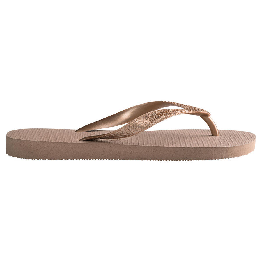 После запуска первой модели шлёпанцев Havaianas бразильцы быстро придумали выворачивать подошву, чтобы открыть цветную часть, создавая однотонные шлёпанцы. Так в 1994 году родилась идея создания топовой модели, первого расширения бренда за 32 года. Монохромные шлёпанцы Havaianas начали покорять мир своими яркими цветами. Последовали многочисленные инновации: принты, лимитированные серии, модели с возможностью персонализации и многое другое. Сделано в Бразилии. Обратите внимание! Примерьте товар после получения. На подошве Havaianas указаны три размера: заказанный вами размер соответствует обведённому кружком размеру под логотипом, а не европейскому; вам необходимо выбрать свой обычный размер. Состав: 100% каучук. Уход: промыть водой.