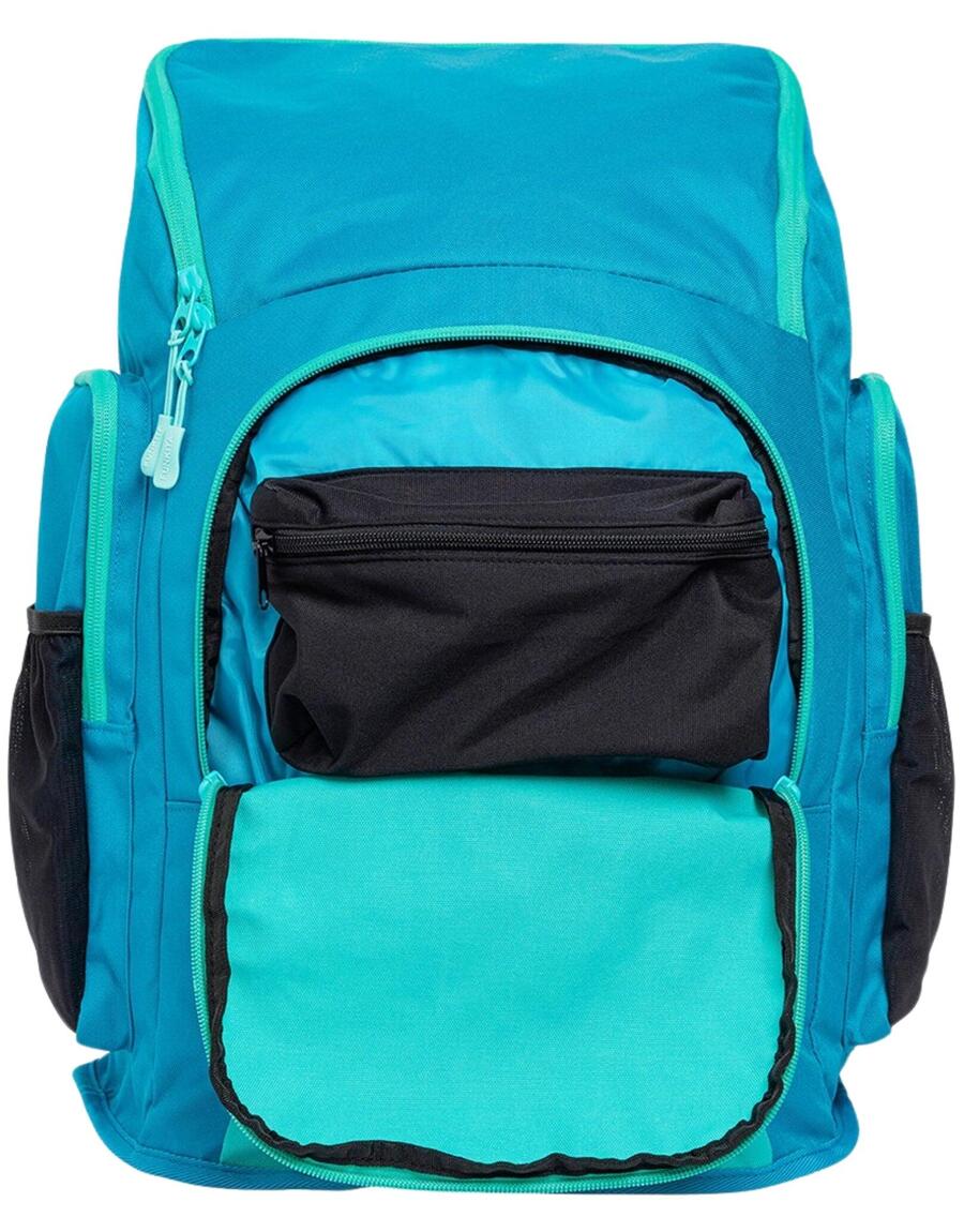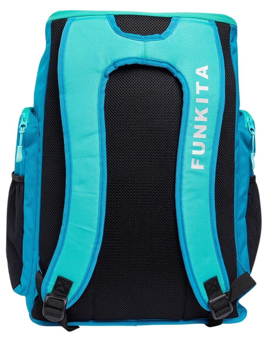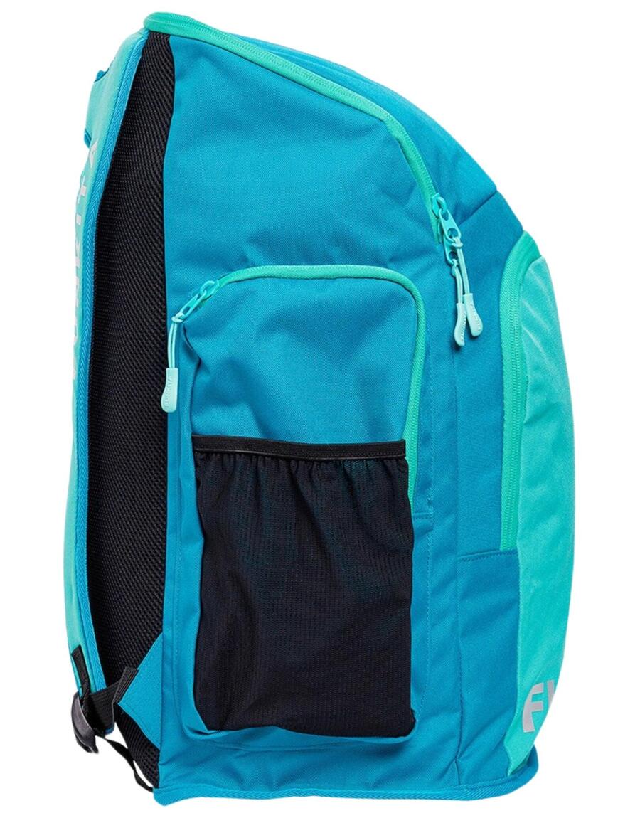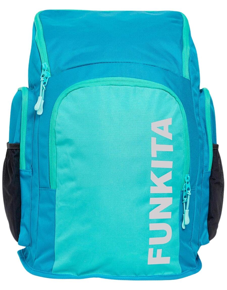 Плавательный рюкзак Funkita Space Case 40 литровРюкзак Funkita Space Case 40 л — это незаменимая вещь для каждого пловца, чтобы перевозить плавательное снаряжение. На передней части этого рюкзака находится большой металлический серебристый логотип Funky. Благодаря внушительному объему в 40 литров, этот рюкзак идеально подходит для активного пловца, которому нужно много снаряжения, или для часто плавающего человека, который ищет аккуратный способ хранения своего снаряжения. Он оснащен большим передним карманом на молнии и отделением для очков с тканевой подкладкой. Есть два боковых сетчатых кармана для бутылок и большое боковое отделение на молнии. Большое основное отделение, которое открывается сверху, имеет чехол для ноутбука и небольшой карман, а также два внутренних отделения для разделения вашего снаряжения. Он имеет удобную мягкую заднюю панель и регулируемые плечевые ремни. Внутренняя часть сумки ярко-розового цвета с черной отделкой.