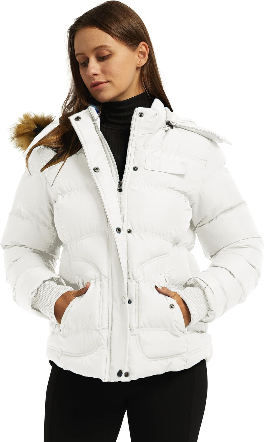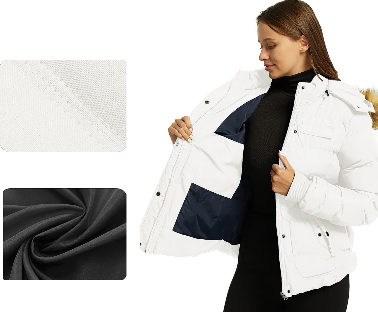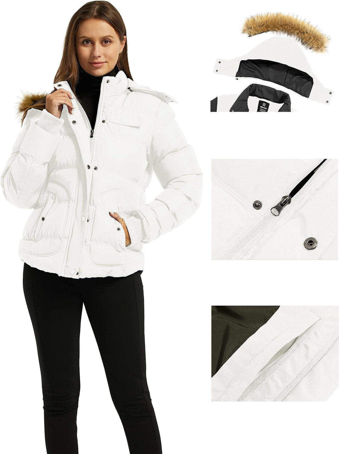 Короткая утеплённая куртка из водоотталкивающей ткани оксфорд. Прочная двусторонняя молния SBS, съемный капюшон с искусственным мехом, 2 передних накладных кармана с двойным входом, 2 внутренних кармана, манжеты в рубчик, застежка на молнию и кнопки. Водонепроницаемая защита с индексом 3000 мм. Покрытие DWR.