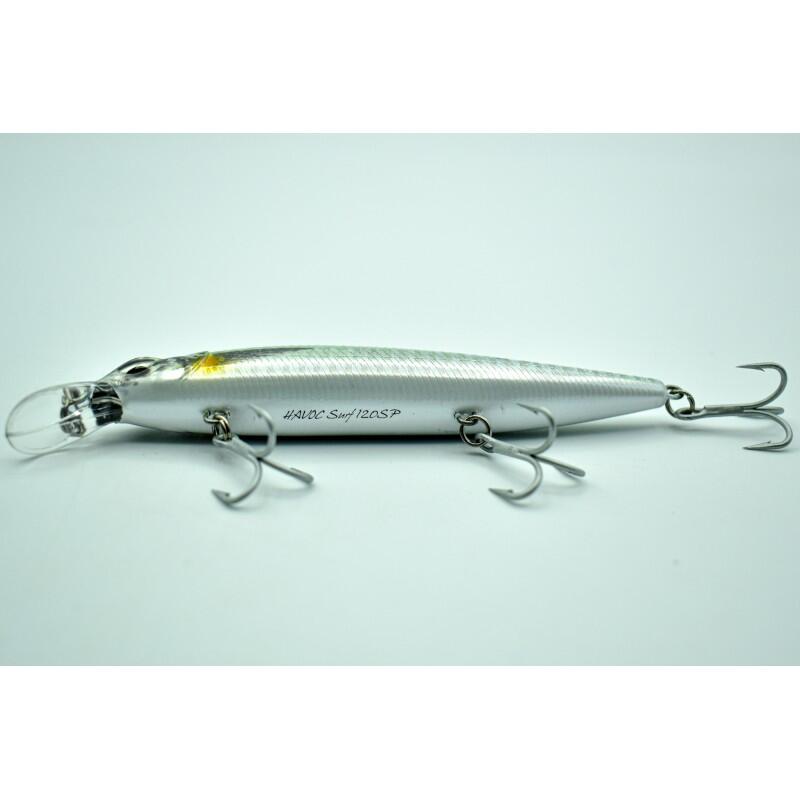 HOCEAN surf 120SP, увеличенная версия surf 100SP, — это джеркбейт для морской рыбалки. Проводите его мощными рывками, и он будет вести себя непредсказуемо, часто с последующей поклёвкой, когда приманка зависнет в воде. Заброс очень дальний, и благодаря своему размеру он станет лакомым кусочком для морских хищников.
