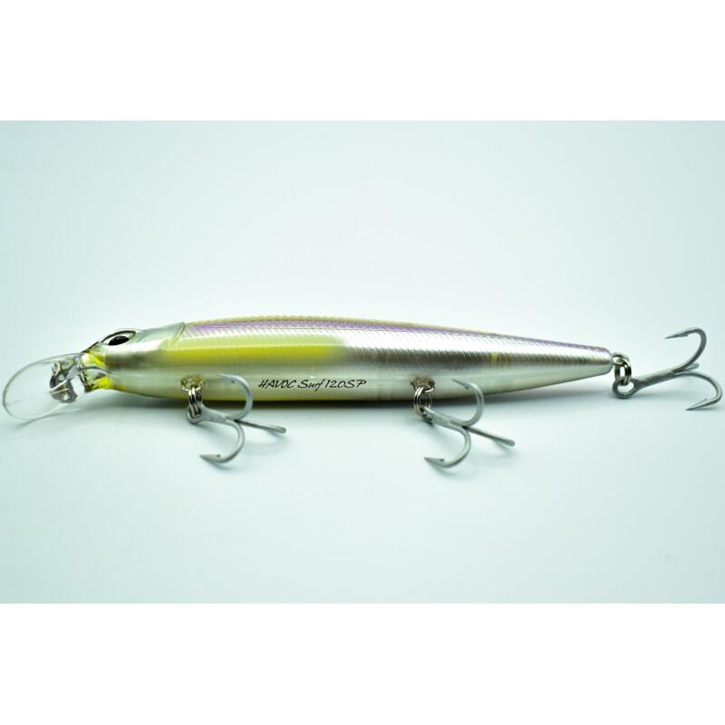 HOCEAN surf 120SP, увеличенная версия surf 100SP, — это джеркбейт для морской рыбалки. Проводите его мощными рывками, и он будет вести себя непредсказуемо, часто с последующей поклёвкой, когда приманка зависнет в воде. Заброс очень дальний, и благодаря своему размеру он станет лакомым кусочком для морских хищников.