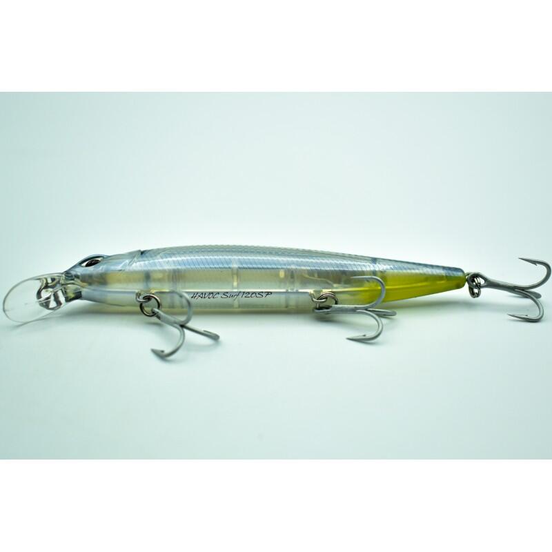 HOCEAN surf 120SP, увеличенная версия surf 100SP, — это джеркбейт для морской рыбалки. Проводите его мощными рывками, и он будет вести себя непредсказуемо, часто с последующей поклёвкой, когда приманка зависнет в воде. Заброс очень дальний, и благодаря своему размеру он станет лакомым кусочком для морских хищников.