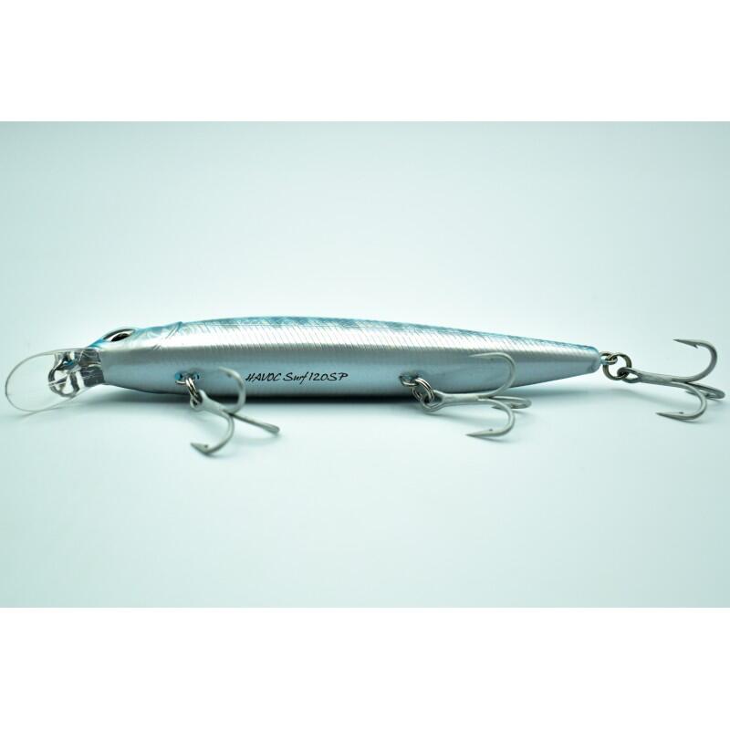HOCEAN surf 120SP, увеличенная версия surf 100SP, — это джеркбейт для морской рыбалки. Проводите его мощными рывками, и он будет вести себя непредсказуемо, часто с последующей поклёвкой, когда приманка зависнет в воде. Заброс очень дальний, и благодаря своему размеру он станет лакомым кусочком для морских хищников.