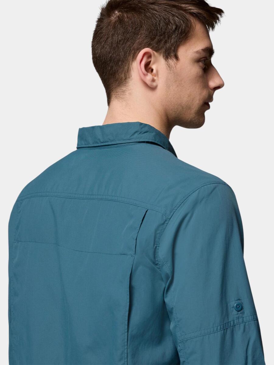 Silver Ridge 2.0 Long Sleeve Shirt — вечная классика летней коллекции Columbia, мужская треккинговая рубашка с длинными рукавами с защитой от ультрафиолета Omni-Shade UPF 50 и отводом пота Omni-Wick. Благодаря технологическим решениям рубашки летние путешествия, активный отдых и городские прогулки больше не являются проблемой, так как технологии рубашки Silver Ridge защищают владельца от вредных ультрафиолетовых лучей солнца и прямого попадания пота, образующегося при движении, на поверхность материала, позволяя ему быстро впитываться и испаряться с кожи. Особенно хорошей новостью для тех, кто склонен к потоотделению, является то, что дополнительные вентиляционные панели, прикрепленные к рубашке, могут обеспечить активную циркуляцию воздуха, значительно повышая общее ощущение комфорта. Рубашка оснащена карманами на молнии и липучке, а длинные рукава можно закатать и застегнуть на пуговицу. Рубашка Silver Ridge тёмно-синего цвета добавит изысканности и обеспечит комфорт во время однодневных походов, а также станет отличным выбором для повседневных ситуаций, катания на каноэ, парусного спорта или длительных путешествий. Она не мнется, быстро сохнет и не требует особого ухода, что делает её очень практичным предметом одежды для походов и путешествий.