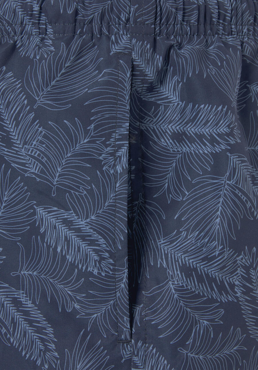 Плавающие шорты Bruno Banani с рисунком листьев. Эластичный пояс с завязками и видимым шнурком. Задний карман на липучке. Сетчатые трусики с внутренним карманом. Прямой крой. Мягкая микрофибра с добавлением переработанного полиэстера. MAY-171