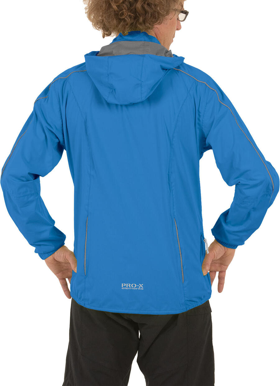 Дышащая велосипедная куртка из материала PXE 4WAY Stretch. Молния по всей длине спереди с клапаном. 1 карман на молнии сзади. Съёмный регулируемый капюшон с козырьком. Светоотражающая окантовка. Регулируемые манжеты. Отдельный чехол для упаковки. Вес для размера L = 330 г.