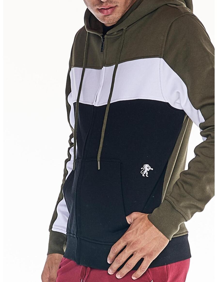 Мужская толстовка Leone 1947 Apparel из коллекции Earth Tones с трёхцветным капюшоном из зимнего флиса с начёсом. Детали: молния по всей длине, регулируемый капюшон со шнурком и карман-кенгуру. Эластичный пояс и манжеты на резинке. Классический логотип с тканевой этикеткой по краю капюшона. Над левым карманом вышита эмблема Leone 1947. Тканые этикетки вшиты в изделие.