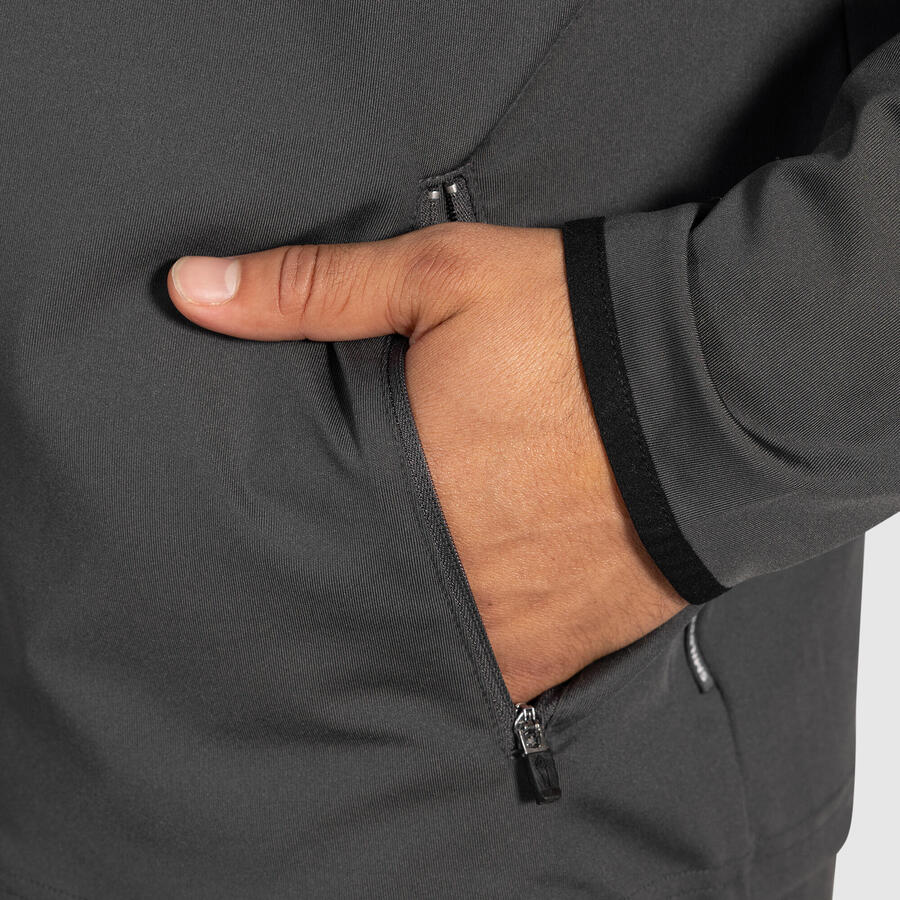 Наша мужская спортивная куртка впечатляет своим спортивным дизайном и функциональными деталями. Лёгкий, эластичный материал обеспечивает максимальный комфорт при каждом движении. Высокий воротник на молнии защищает от ветра, а боковые карманы на молнии обеспечивают надёжное хранение вещей. Эта куртка станет вашим универсальным спутником как для тренировок, так и для повседневной носки.