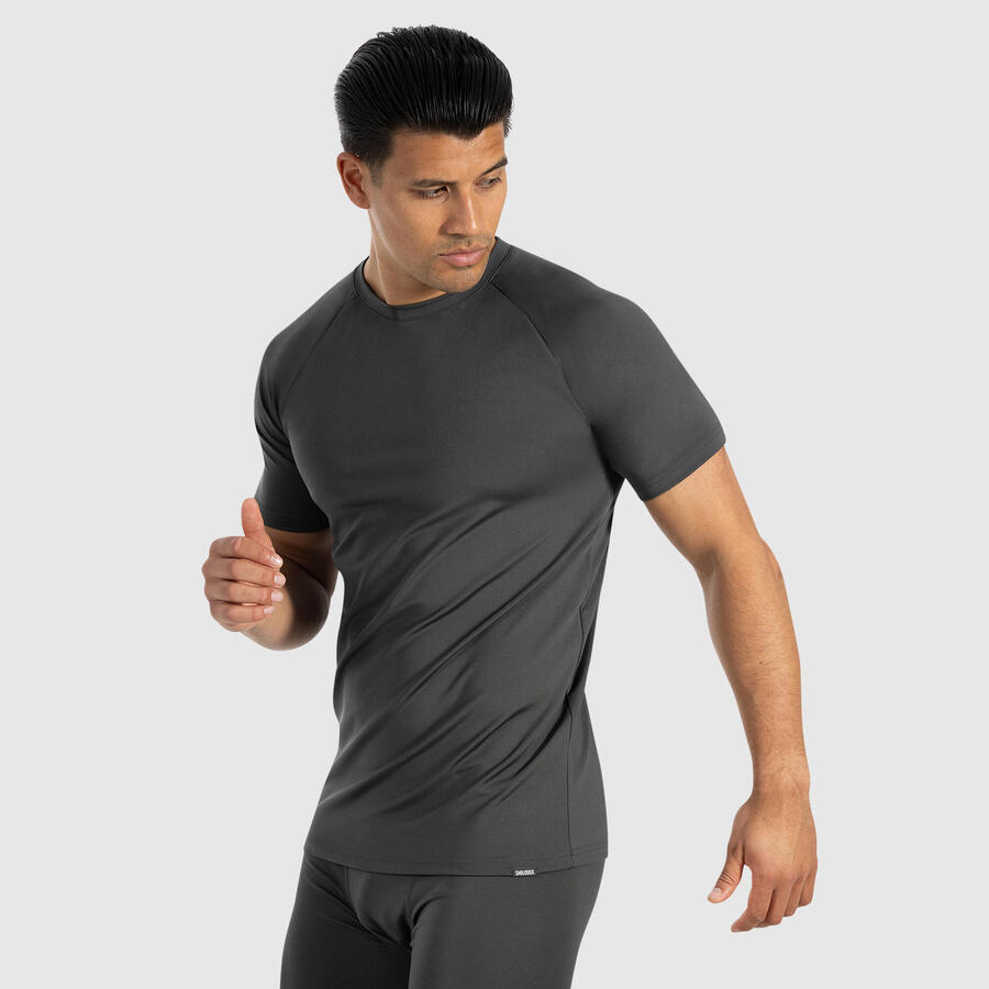 Наша мужская футболка впечатляет комфортом и спортивной посадкой. Эластичный материал обеспечивает свободу движений во время любой активности. Рукава реглан и классический круглый вырез горловины создают современный и функциональный образ. Эта футболка отлично подходит как для тренировок, так и для повседневной носки.