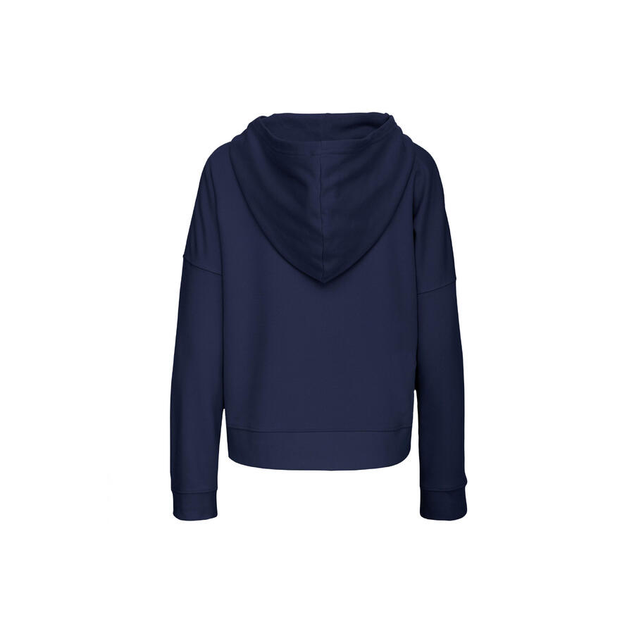91% органический хлопок / 9% полиэстер. Флис французский терри без начеса. Очень мягкая на ощупь. С высокой посадкой на рукавах. Свободный, свободный крой с капюшоном на трикотажной подкладке. Узор ёлочка на спине. Ребристые манжеты и низ. На воротнике нет фирменной этикетки, только чип размера для удобства персонализации. Сертифицировано по стандарту STANDARD 100 компанией OEKO-TEXВ № CQ1007/7, IFTH.