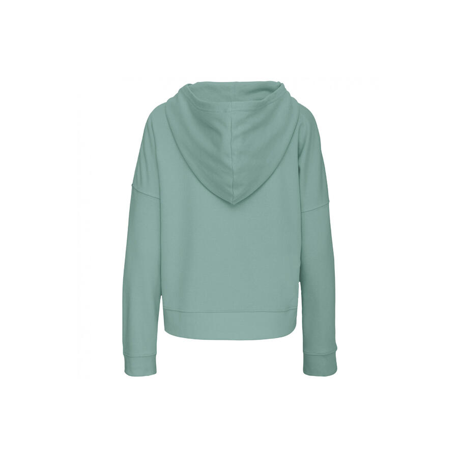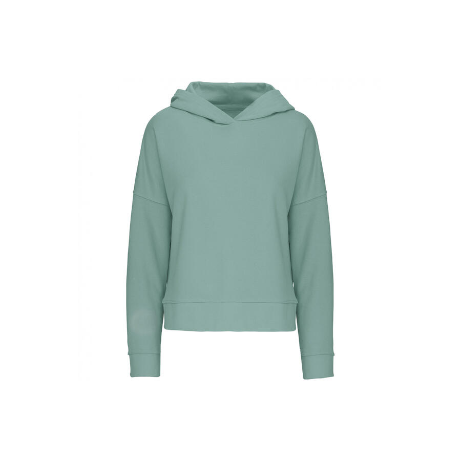 91% органический хлопок / 9% полиэстер. Флис французский терри без начеса. Очень мягкая на ощупь. С высокой посадкой на рукавах. Свободный, свободный крой с капюшоном на трикотажной подкладке. Узор ёлочка на спине. Ребристые манжеты и низ. На воротнике нет фирменной этикетки, только чип размера для удобства персонализации. Сертифицировано по стандарту STANDARD 100 компанией OEKO-TEXВ № CQ1007/7, IFTH.