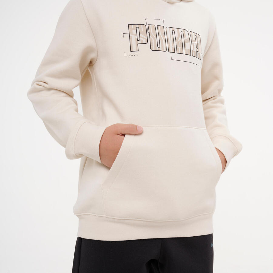 PUMA Детская толстовка с капюшоном - бежевая с принтом