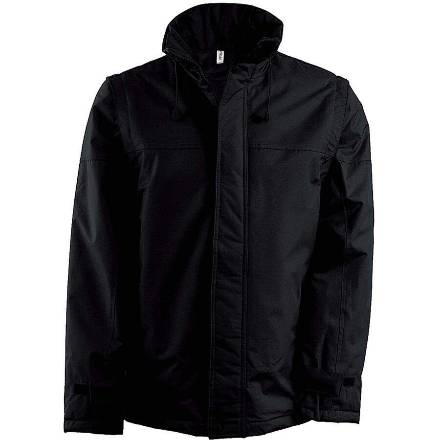 Внешний материал: 100% полиэстер с покрытием из ПВХ. Застёжка на молнию и кнопку. Регулируемые манжеты на липучке. Капюшон в воротнике, застёжка-молния с эластичным шнурком. 2 внутренних кармана + 1 карман для мобильного телефона. Внутренний карман для персонализации. Подкладка: 100% полиэстер и утеплитель из 100% полиэстера. Съёмные рукава. 2 накладных боковых кармана. Кулиска со стопорами внизу. Капюшон в воротнике. Застёжка-молния для персонализации.