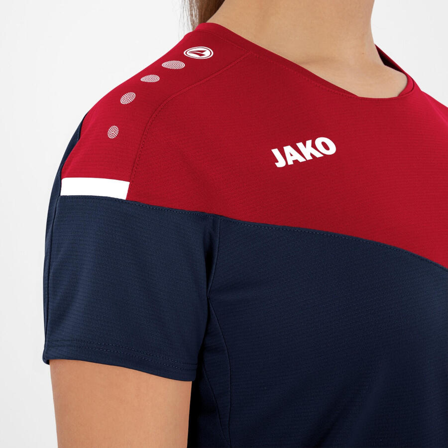 Женская футболка Jako Champ 2.0. В линейке CHAMP 2.0 командный образ становится неотъемлемой частью. Функциональные материалы и идеальная посадка дополняют спортивный дизайн. Спортивный круглый вырез. Спинка из микросетки. Контрастные полосы на рукавах. Контрастная тесьма на горловине. Ярлык с указанием характеристик. Женский крой. Жаккард из полиэстера. Состав: 100% полиэстер.