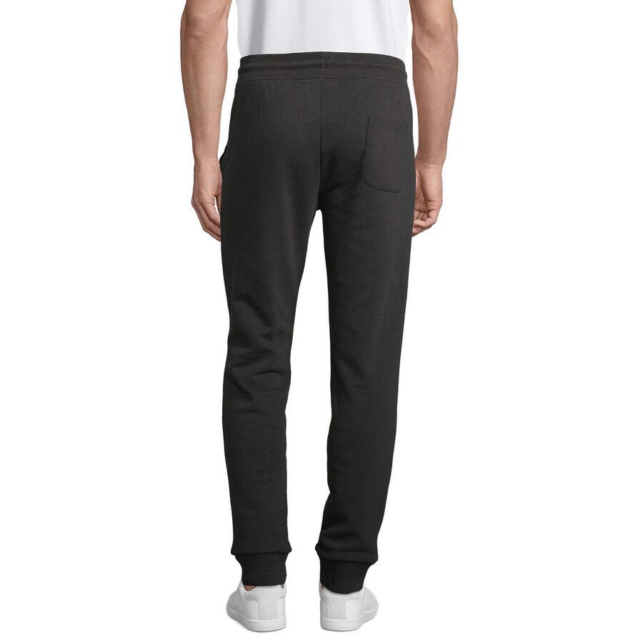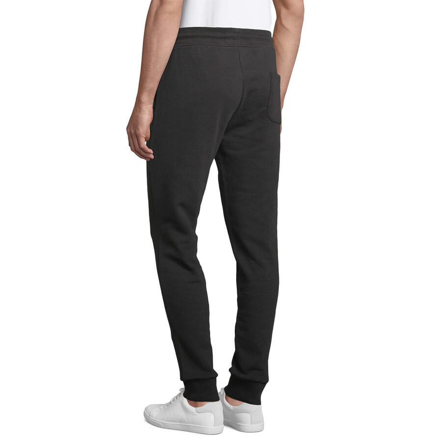 2 итальянских кармана, 1 накладной карман сзади, резинка 2x2 на талии и манжетах на штанинах, круглый шнурок с наконечниками в тон.