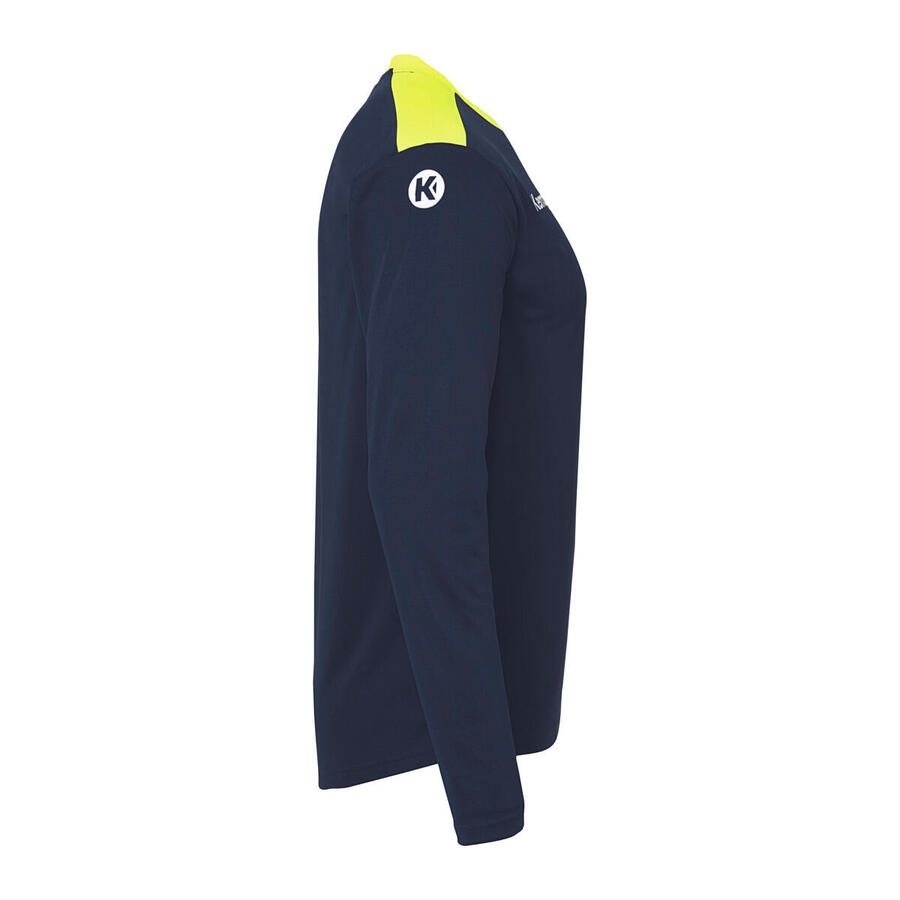Мужская рубашка с длинным рукавом Kempa Emotion 27. РАДИ ПЛАНЕТЫ. Контрастные вставки. Контрастный вырез горловины. Напечатанные надписи и логотип. Контрастный круглый вырез горловины. Унисекс-крой с технологией 2face dry. Материал: 100% полиэстер.