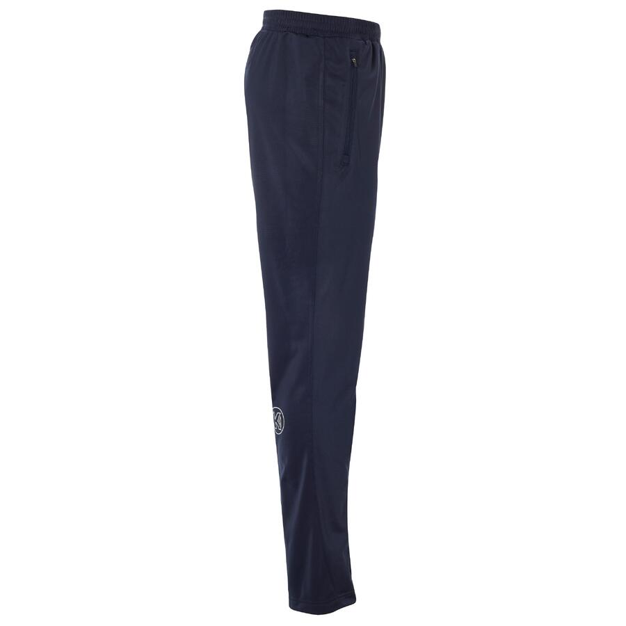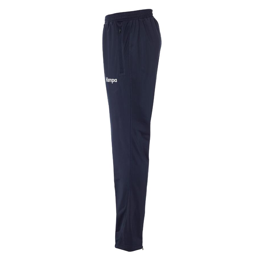 Затягивается шнурком. Боковые карманы на молнии. Молния на штанине. Вышивка Kempa и принт логотипа Kempa. Материал: 100% полиэстер.