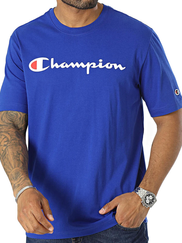 Мужская рубашка Champion с короткими рукавами синего цвета из коллекции осень-зима 2024. Эта коллекция рубашек с короткими рукавами идеально дополнит любой образ.