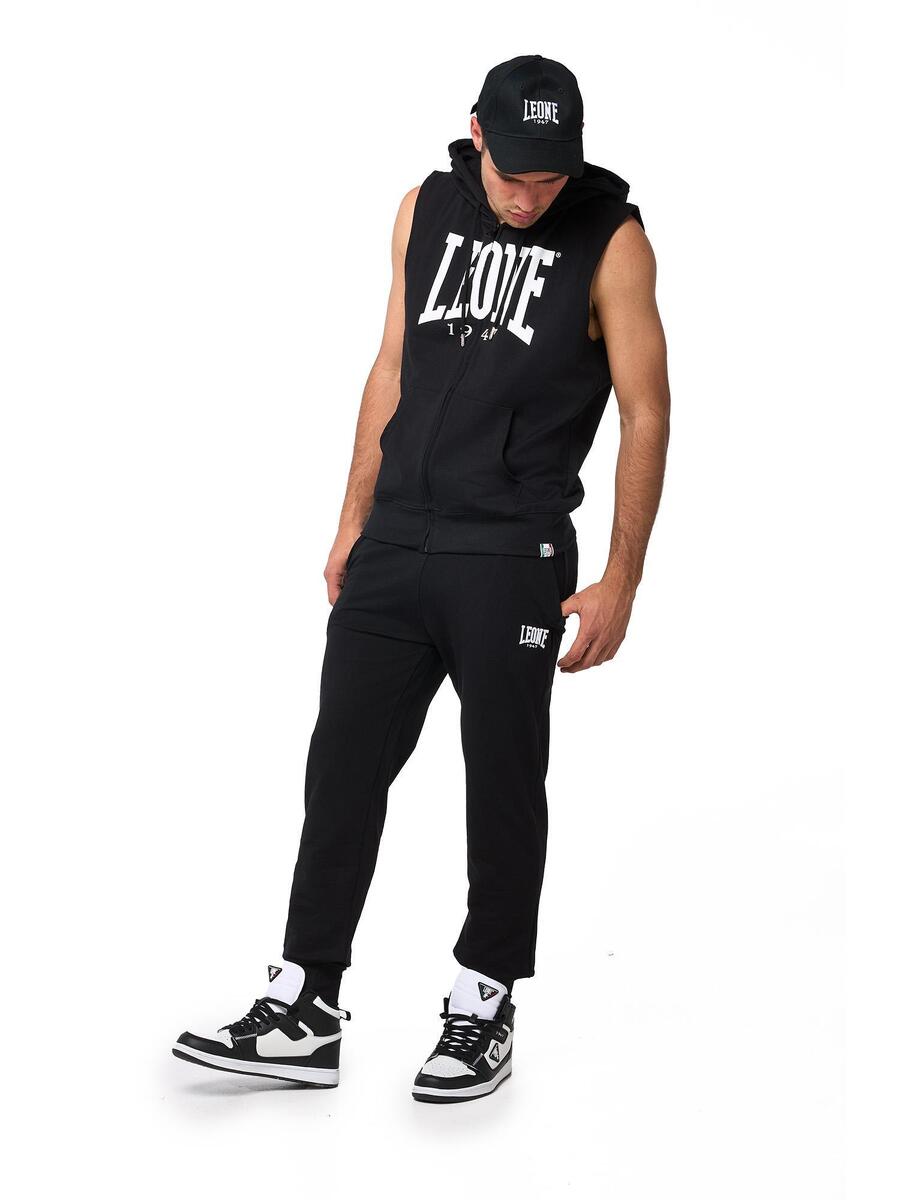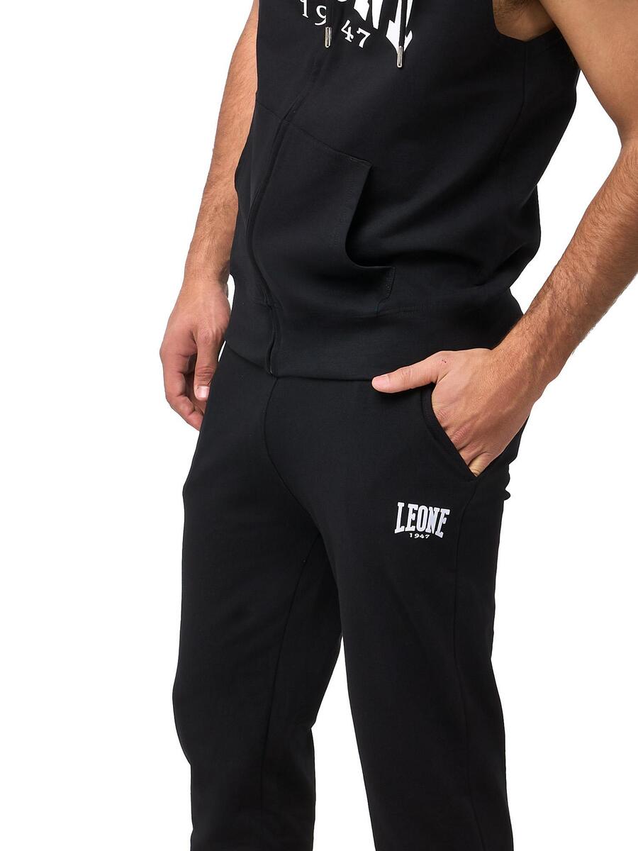Базовые мужские брюки Leone 1947 Apparel с эластичным поясом, универсальные и функциональные, подойдут как для занятий в спортзале, так и для отдыха. Изготовлены из эластичного летнего флиса (без начеса), мягкого и приятного на ощупь материала. Детали: эластичная резинка на талии и щиколотках, небольшой принт с логотипом Leone 1947 под левым карманом. Тканые этикетки пришиты с внутренней стороны изделия.
