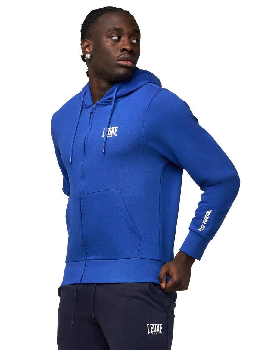 Мужской спортивный костюм, состоящий из: Толстовки с капюшоном на регулируемом шнурке и большим карманом-кенгуру. Молния с металлическим бегунком. Спортивные брюки с эластичным поясом и эластичными ребристыми манжетами. Передние карманы. Графика и логотипы, выполненные методом аквапринта.