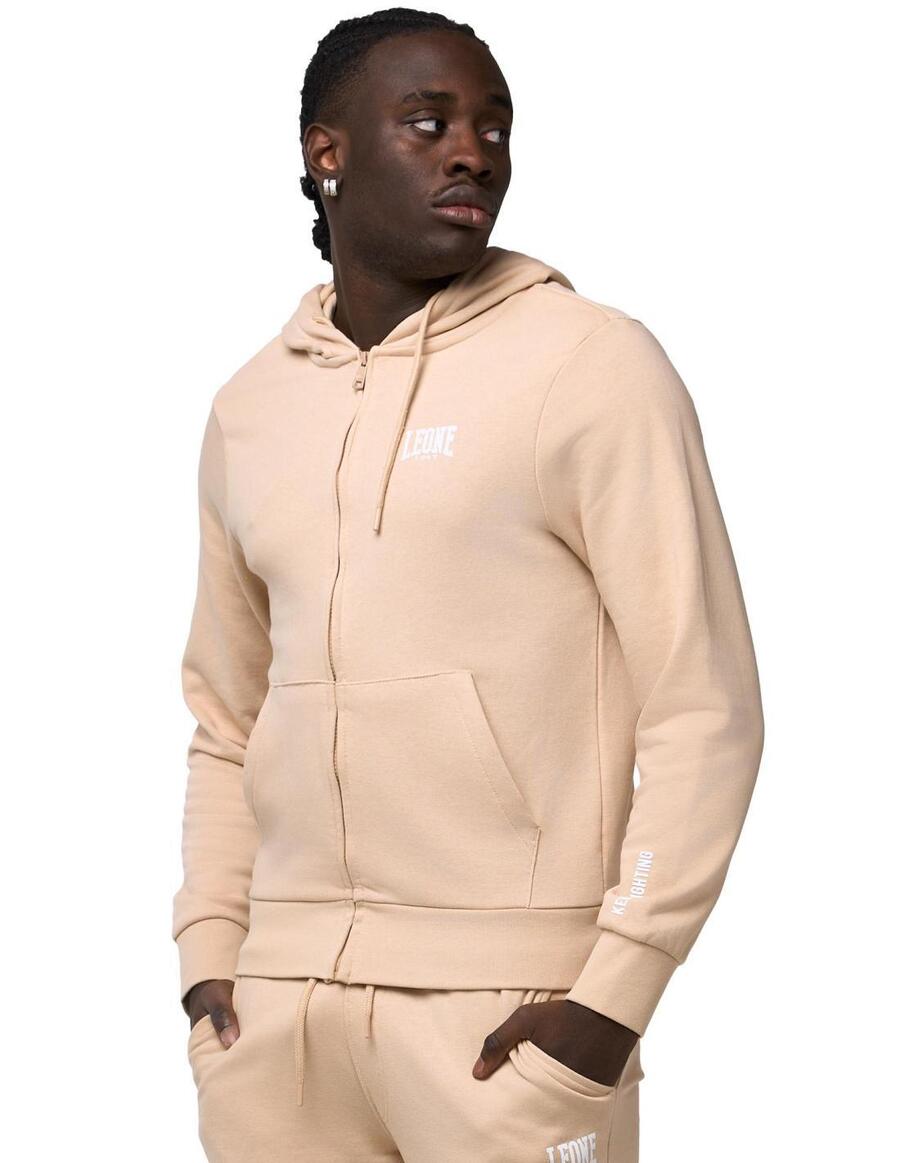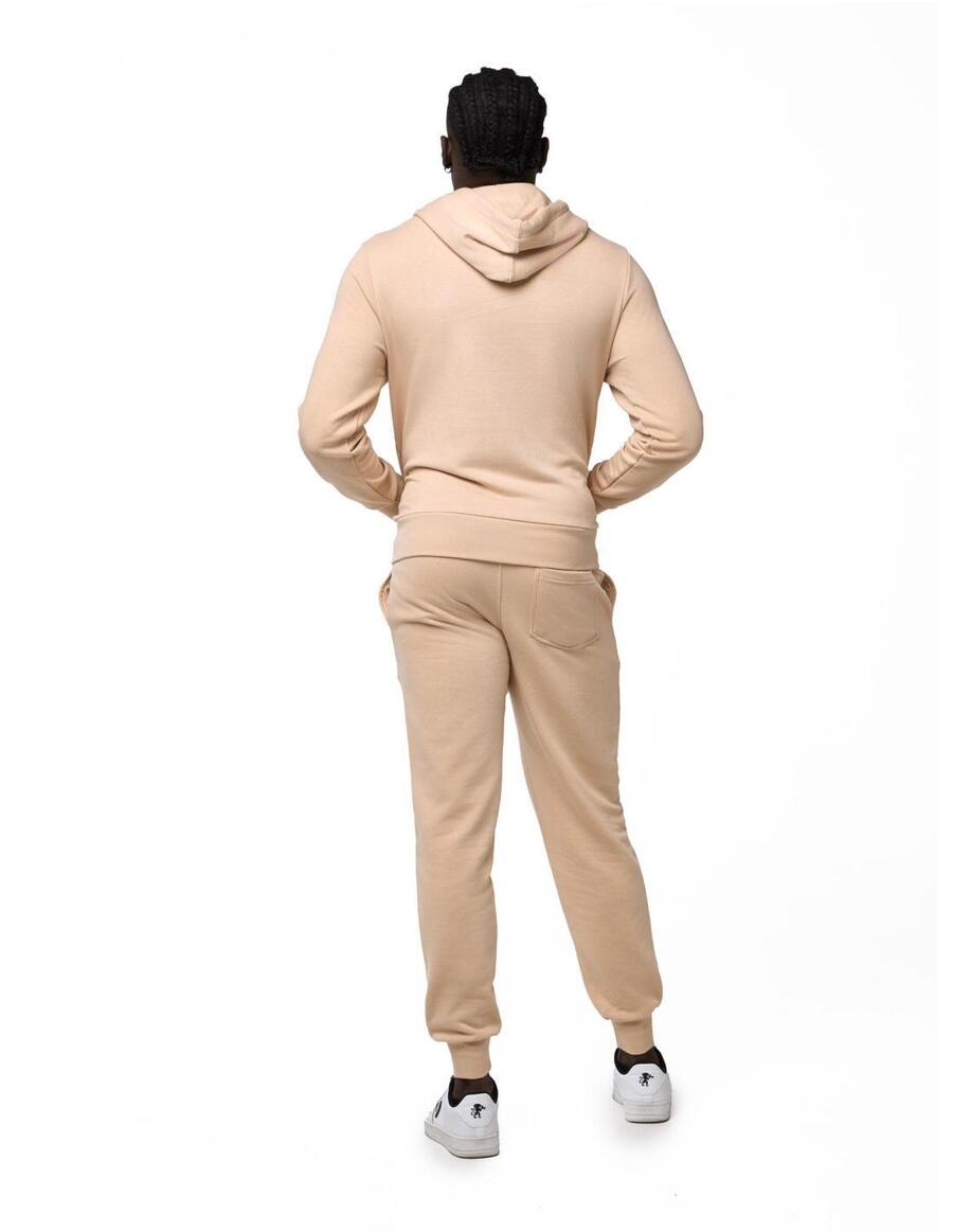 Мужской спортивный костюм, состоящий из: Толстовки с капюшоном на регулируемом шнурке и большим карманом-кенгуру. Молния с металлическим бегунком. Спортивные брюки с эластичным поясом и эластичными ребристыми манжетами. Передние карманы. Графика и логотипы, выполненные методом аквапринта.