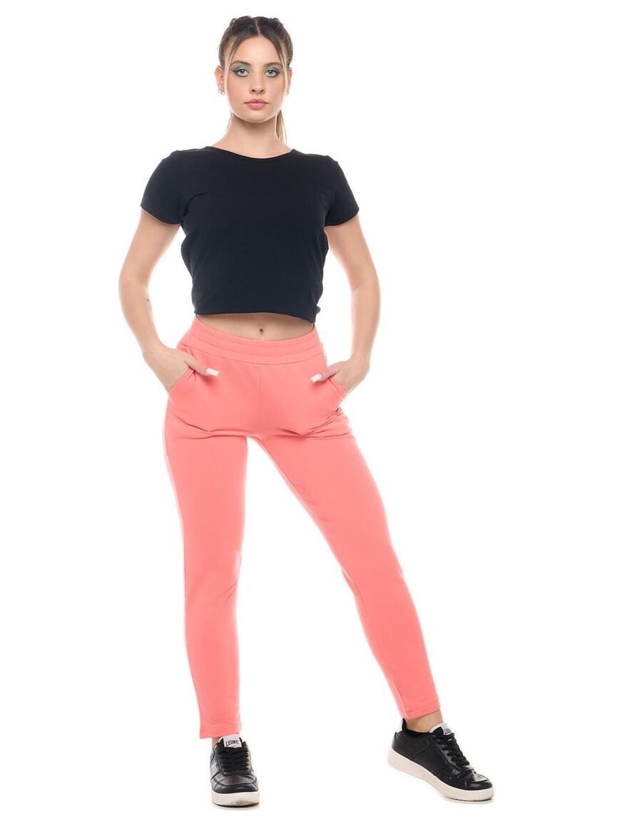 Спортивные брюки с эластичным поясом в рубчик из лёгкого хлопка без флиса, без манжет. Прорезные карманы спереди, металлическая пластинка с логотипом слева.