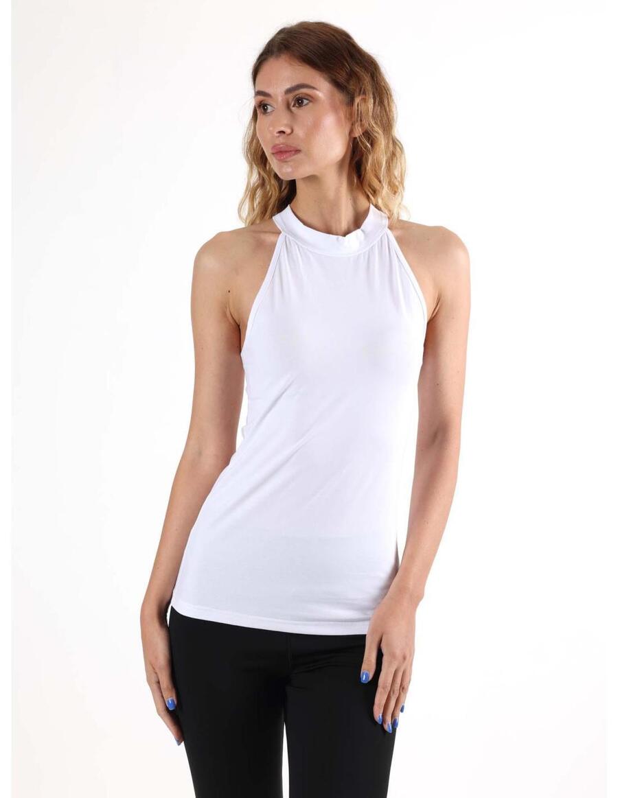 Майка с рукавами стандартной длины и круглым вырезом. Изготовлена из эластичного хлопка.