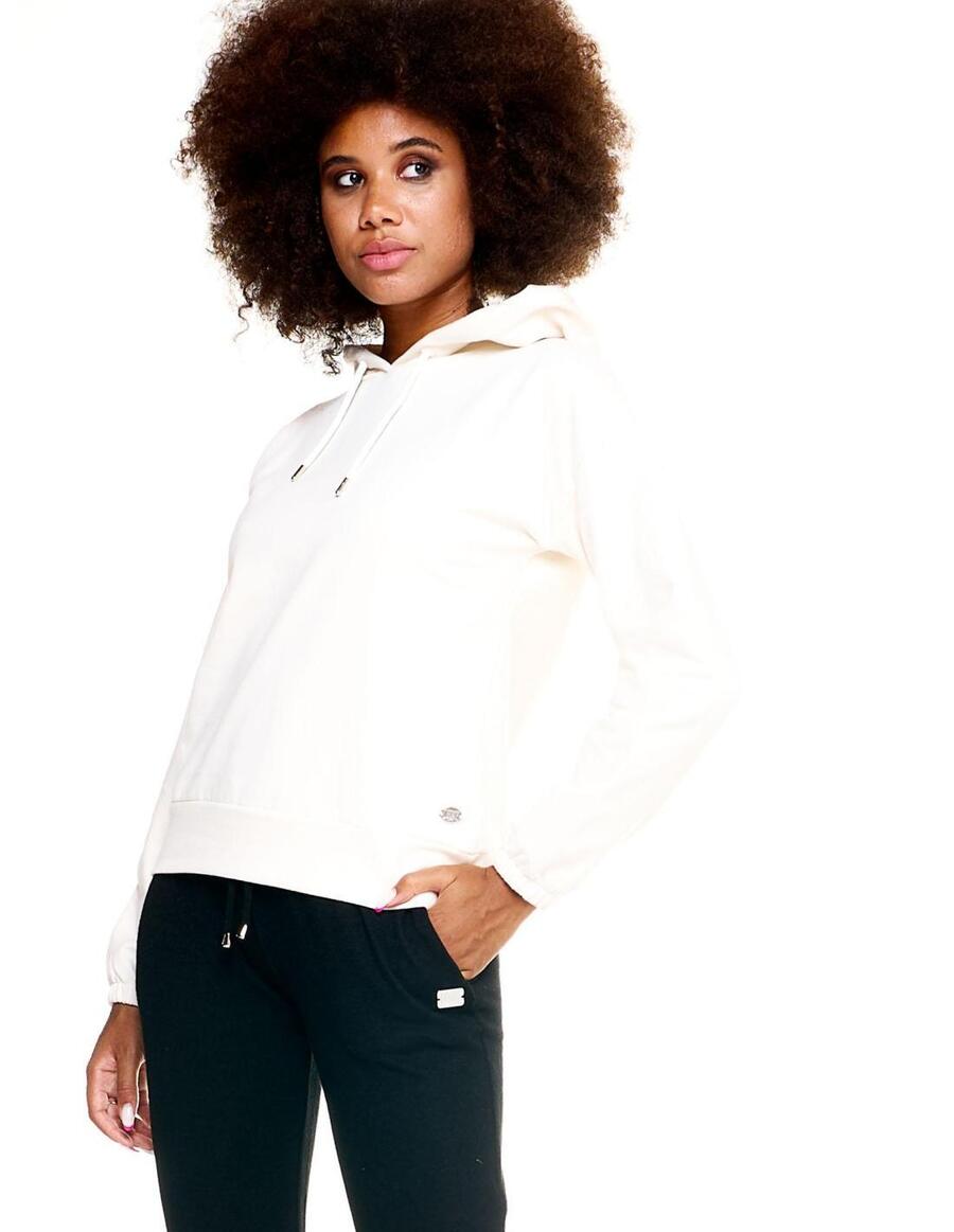 Женская закрытая толстовка Leone 1947 Apparel из линейки Leone Winter Basics, выполненная из эластичного флиса с начесом и карбоновым покрытием. Низ на резинке, манжеты на внутренней резинке. Капюшон с круглым шнурком и серебристыми металлическими наконечниками. Слева внизу пришита серебристая пластинка.