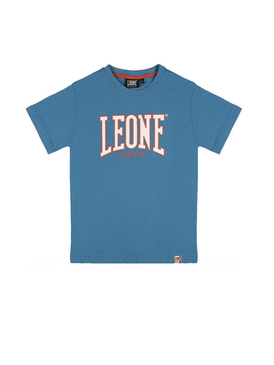 Детская хлопковая футболка с короткими рукавами. Логотип Leone 1947 нанесён водным принтом. Внизу трёхцветная полоса. На шее — напульсник. Идеально подходит для занятий спортом, уроков физкультуры и отдыха.