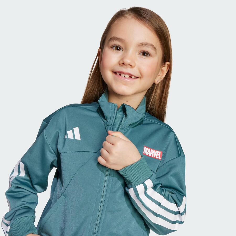 В этом детском спортивном костюме adidas ваш маленький супергерой будет готов к действию. Вдохновленный Человеком-пауком, он украшен ярким принтом обложки комикса на спине куртки. Мягкий трикотаж и свободный крой обеспечат детям комфорт, будь то катание на качелях по городу или просто бег на детской площадке.
