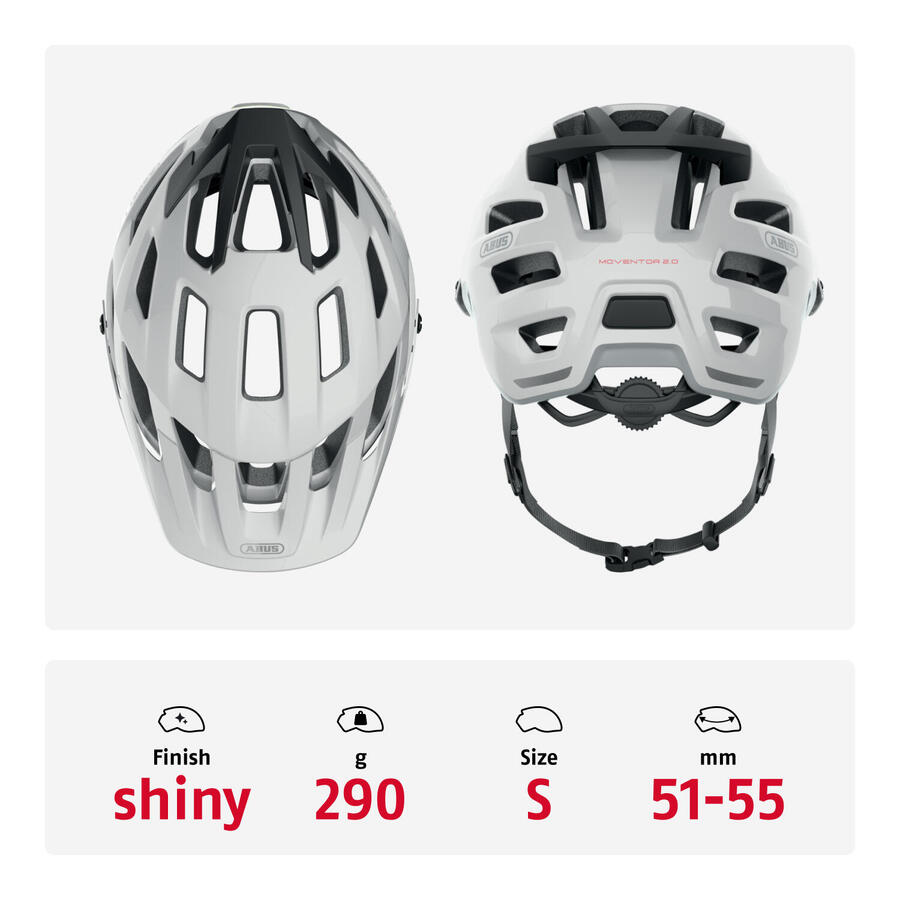 ABUS Moventor 2.0 — горный велосипедный шлем для защиты на крутых трассахКак и его предшественник Moventor, Moventor 2.0 — это шлем класса all-mountain. Но даже тайный любитель кросс-кантри, живущий в каждом горном велосипедисте, оценит преимущества этой лёгкой модели. Адаптированная форма головы обеспечивает особенно удобную посадку. Крутые подъёмы, скоростные гонки, приключения на весь день — защитите свою голову во время катания по пересеченной местности. Даункантри — это быстрые подъёмы, быстрые спуски и повторение. Moventor 2.0 идеально подходит для горных велосипедистов, которые чувствуют себя как дома на крутых трассах. Шлем для горного велосипеда лёгкий, хорошо вентилируется и имеет более глубокую посадку, которая обеспечивает лучшую защиту затылка. Когда трасса идёт под уклон, 10 впускных и 9 выпускных отверстий обеспечивают хорошую вентиляцию. Благодаря системе регулировки Zoom Ace MTB шлем можно индивидуально отрегулировать по форме головы. Это особенно важно при езде по бездорожью. Что ещё нужно? Другие преимущества продукта: GoggFit: спортивные очки для горных велосипедистов можно прикрепить к шлему, когда они не используются. Многослойная формовка: этот процесс предполагает помещение жёсткого пенополистирола в несколько поликарбонатных внешних оболочек, что делает шлем прочным. Защита нижнего края: закрытый нижний край обеспечивает дополнительную прочность. Пластиковое кольцо внутри шлема охватывает половину головы и обеспечивает надёжную посадку при повороте регулировочного колеса. Совместимость с конским хвостом: углубление в системе регулировки создаёт пространство для конского хвоста. Совместимость с QUIN: чип QUIN для обнаружения падения можно установить дополнительно.